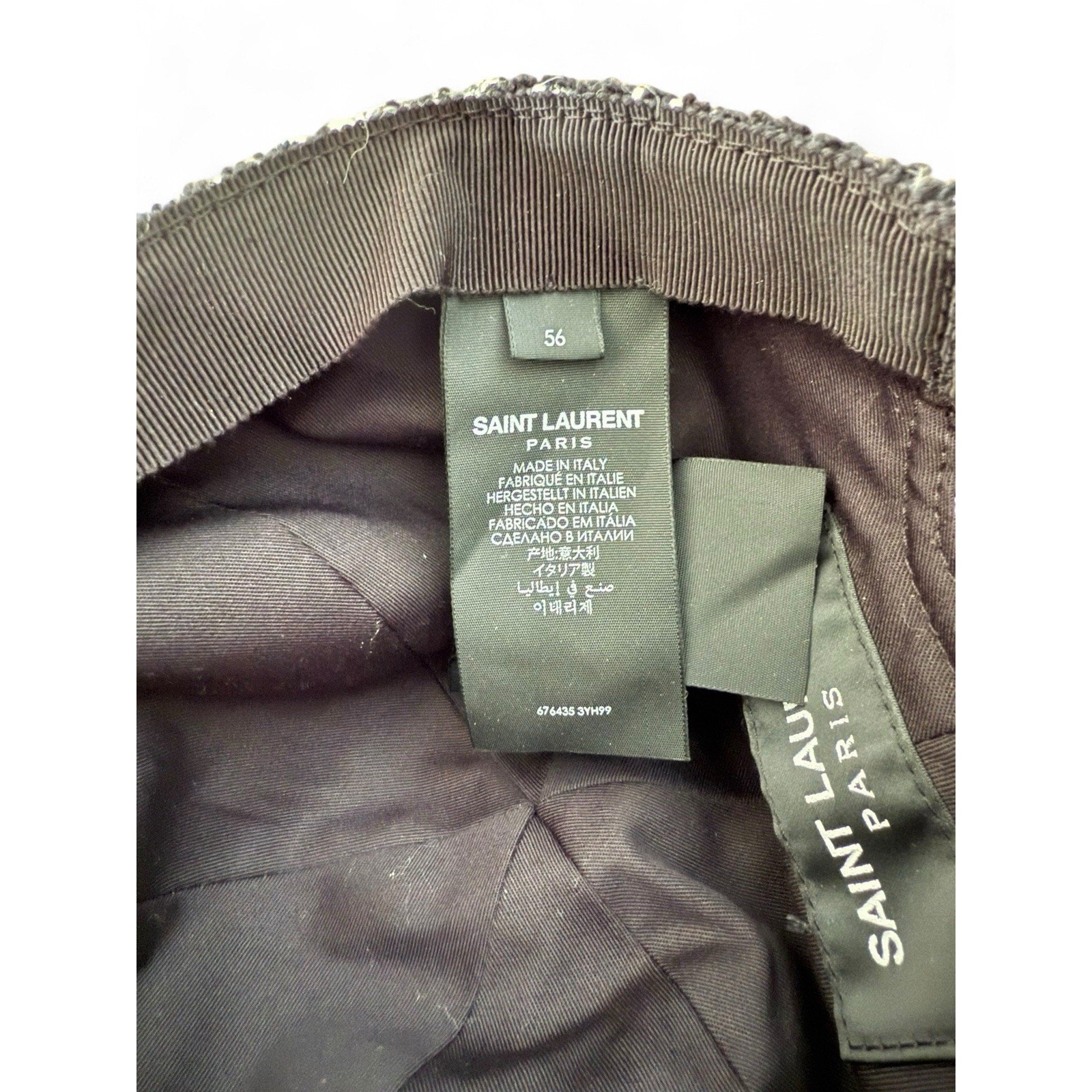 YSL SAINT LAURENT TWEED WOOL BLEND LOGO BASEBALL CAP HAT 56/SMALL