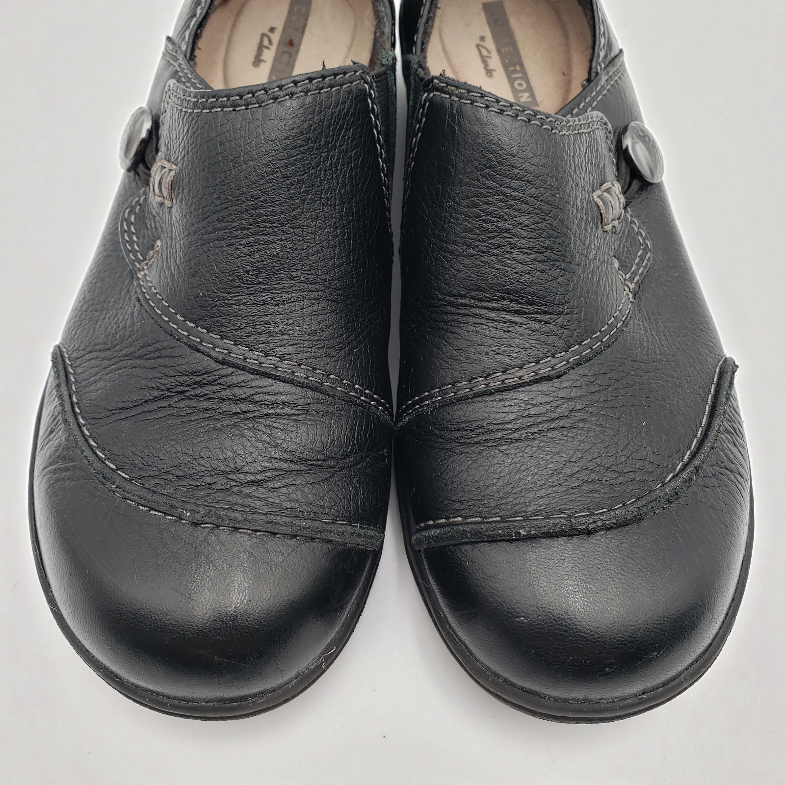 Clarks Women's 5 M Cheyn Misha Loafer Black Leather Slip On Flat Shoe Casual