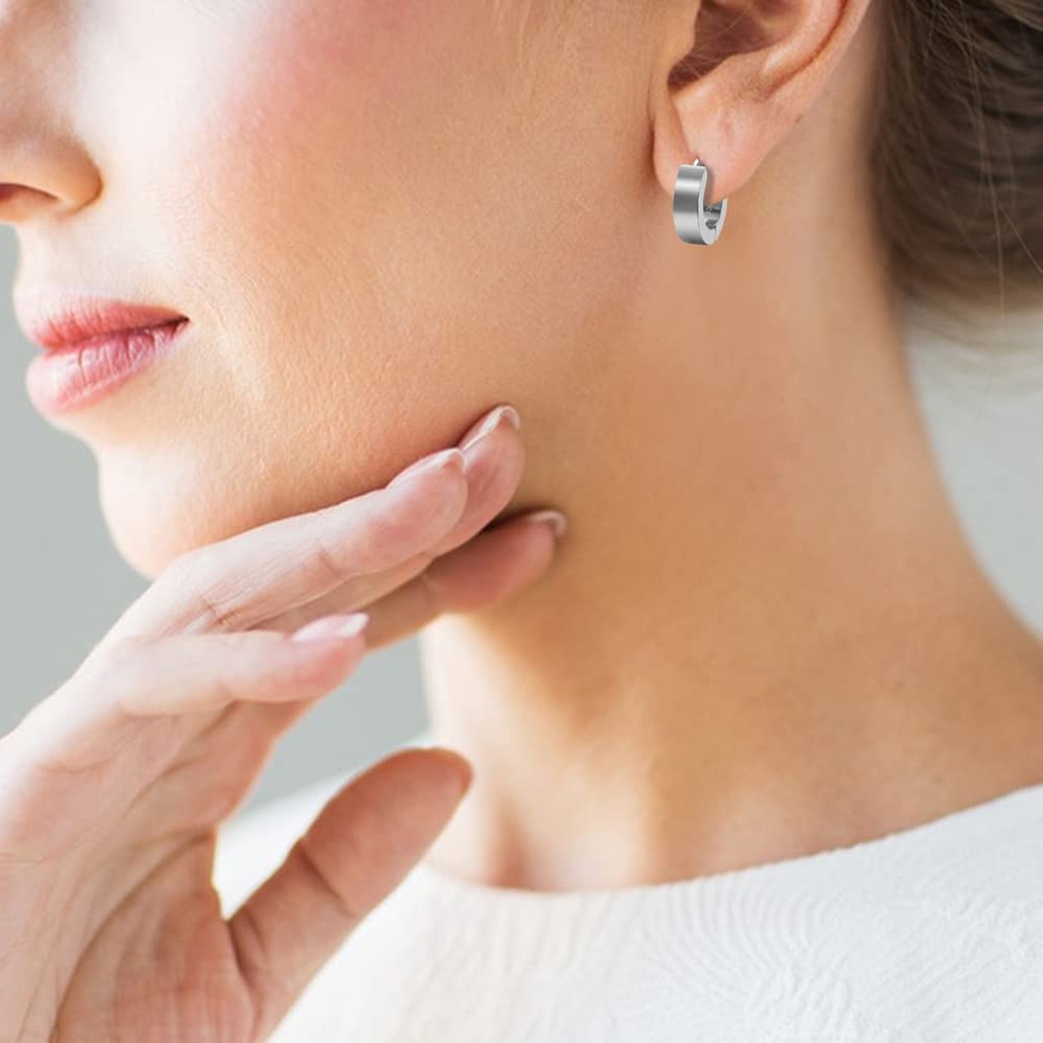 Edforce Stainless Steel Small Huggie Hoop Earrings for Women Silver