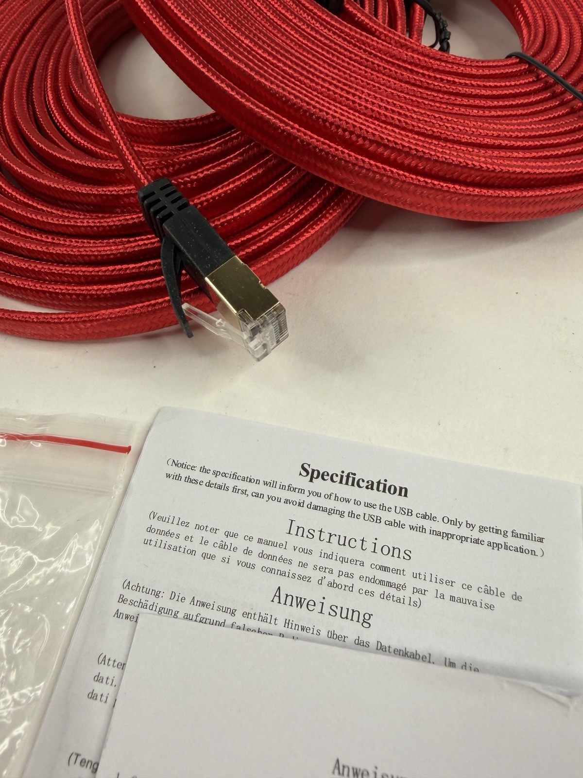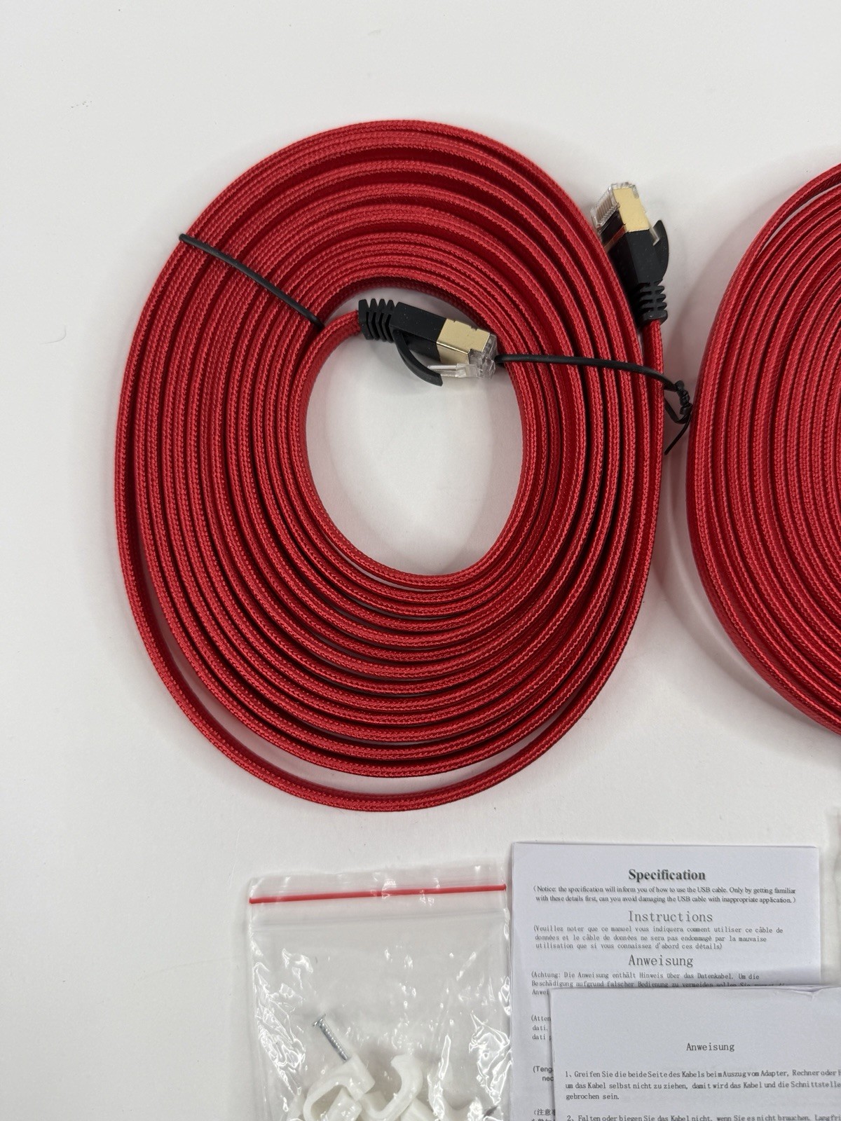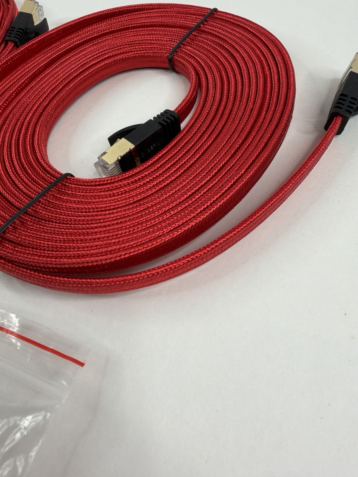 как выглядит 15 FT. Braided Red Cat7 Flat Cable - Open Box - Lot of 2 фото
