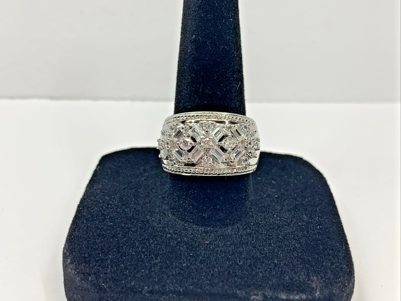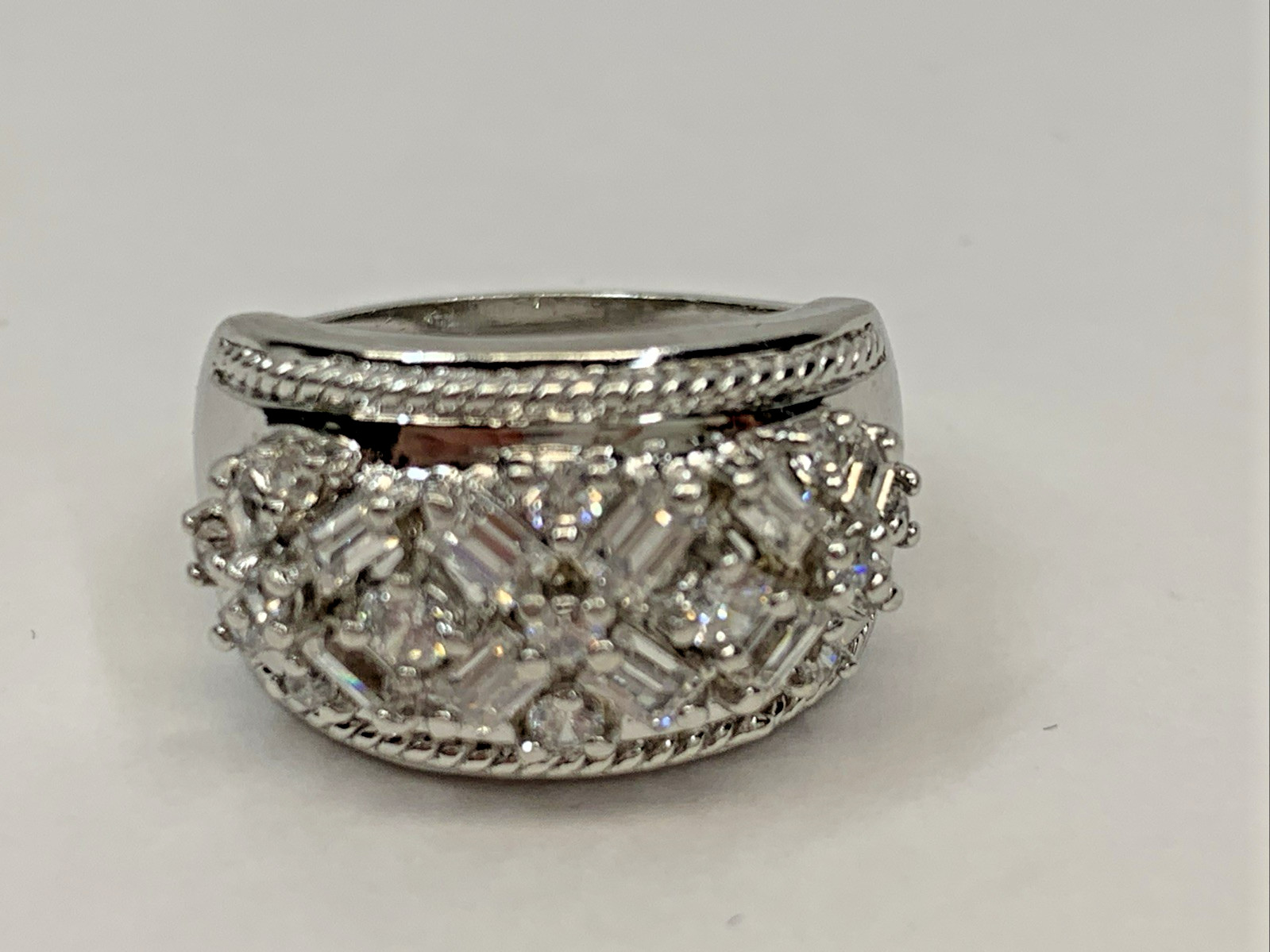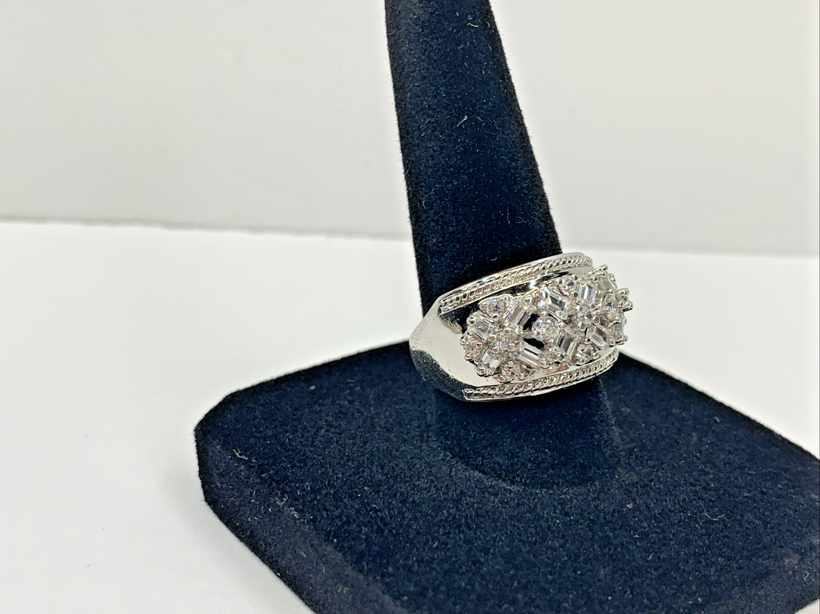 как выглядит Sterling Silver 925 White CZ Vintage Cocktail Statement Ring Size 6 STUNNING фото