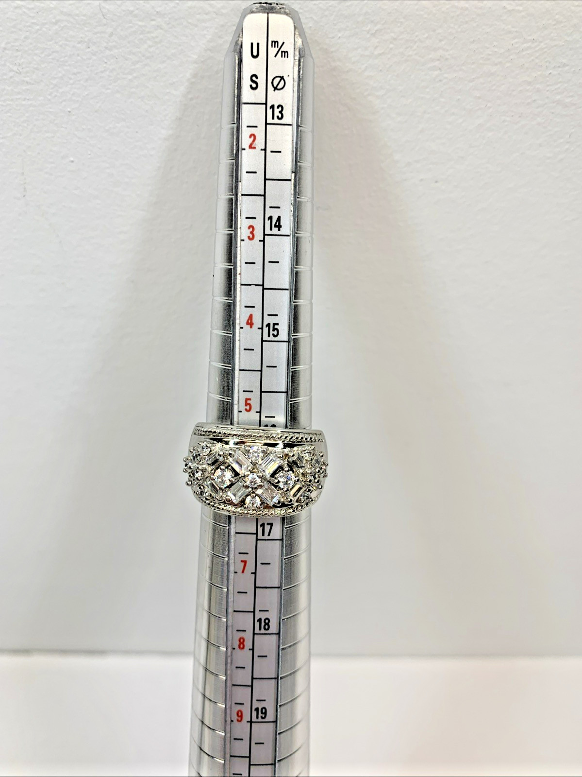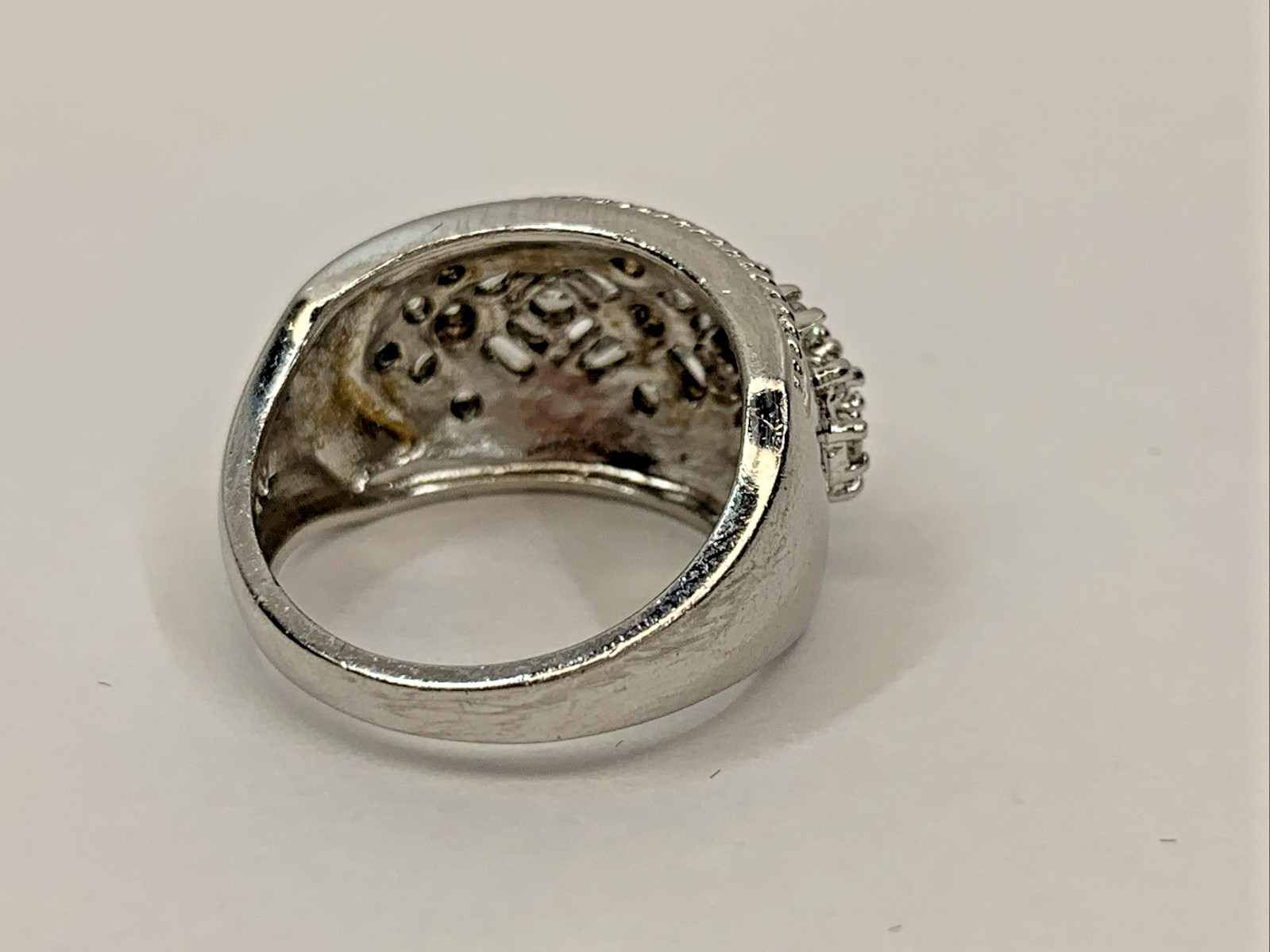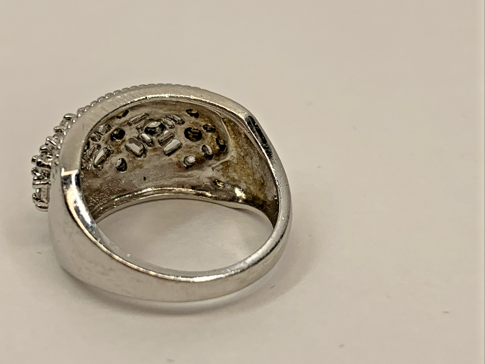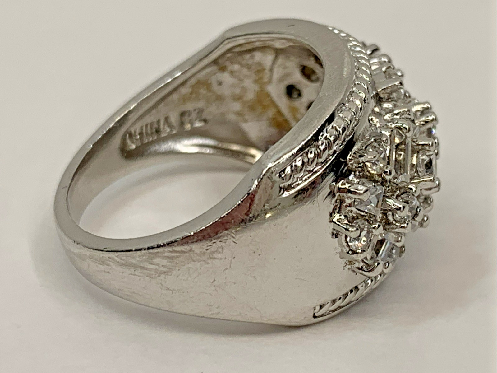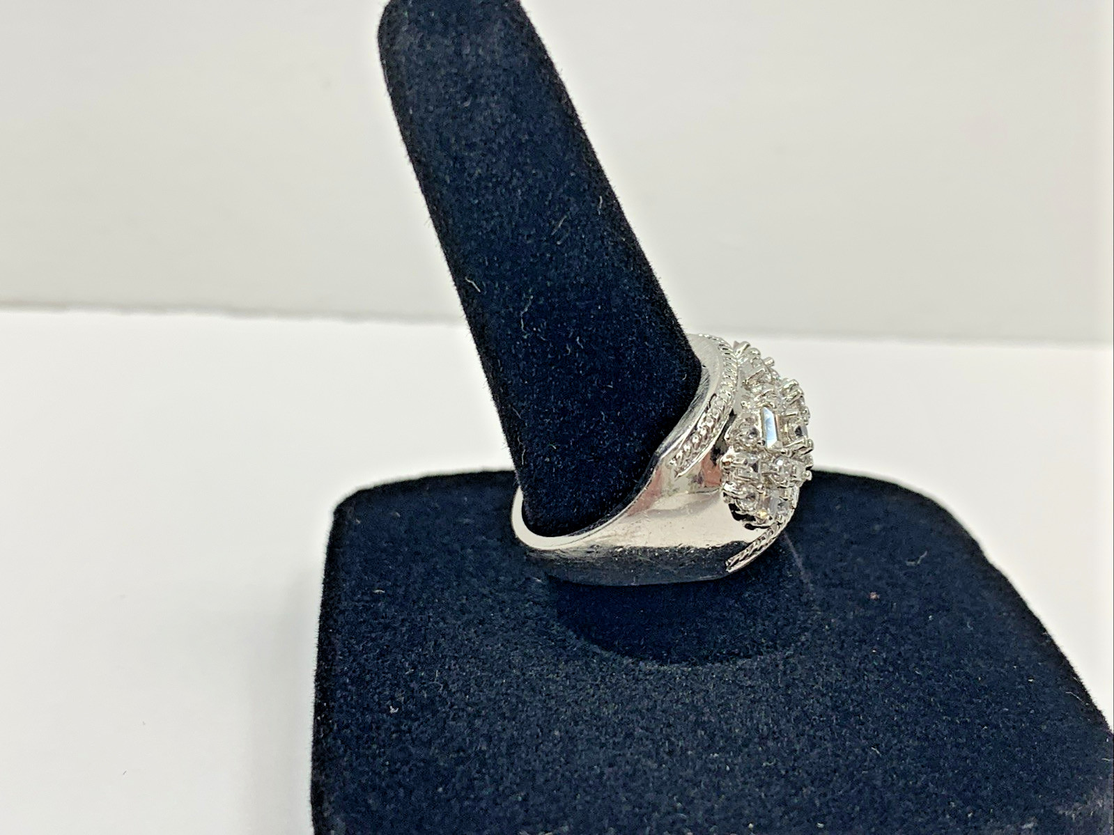 Sterling Silver 925 White CZ Vintage Cocktail Statement Ring Size 6 STUNNING