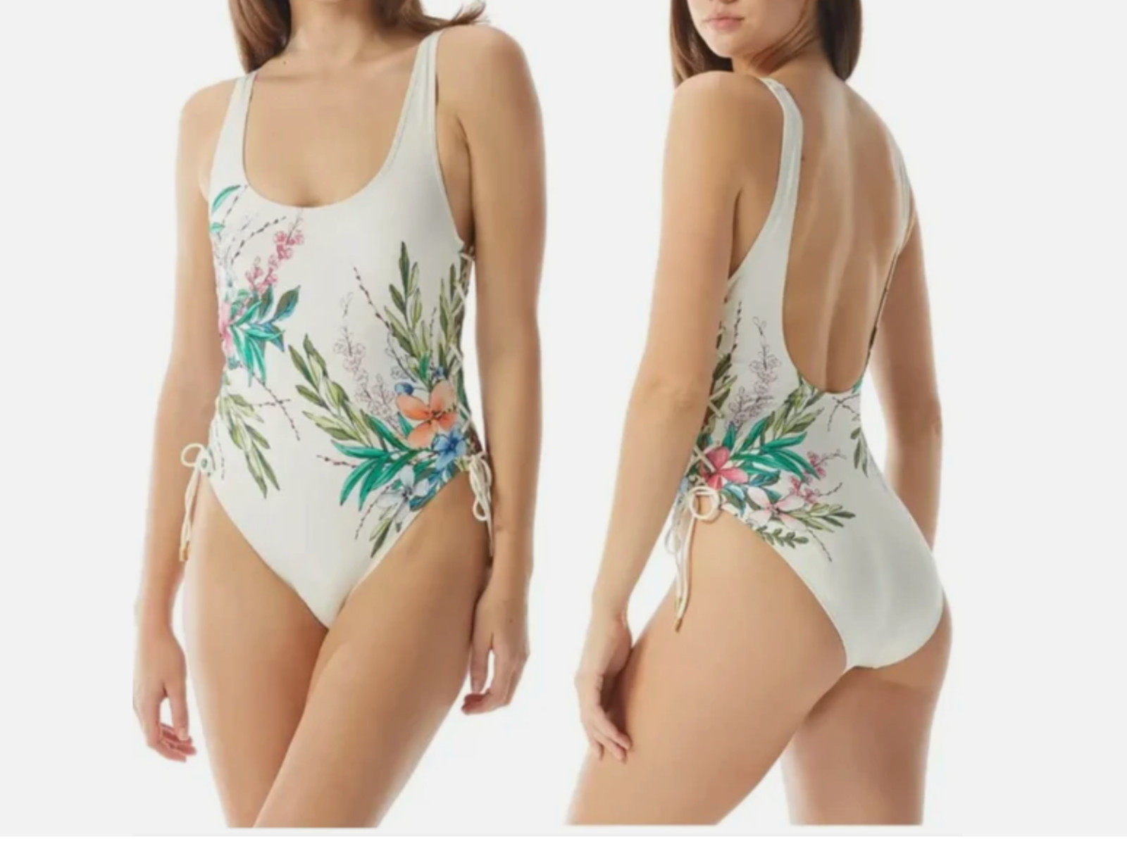 как выглядит Vince Camuto Pacific Grove Lace Up One Piece Swimsuit Ivory Size-4 MSRP 154 фото