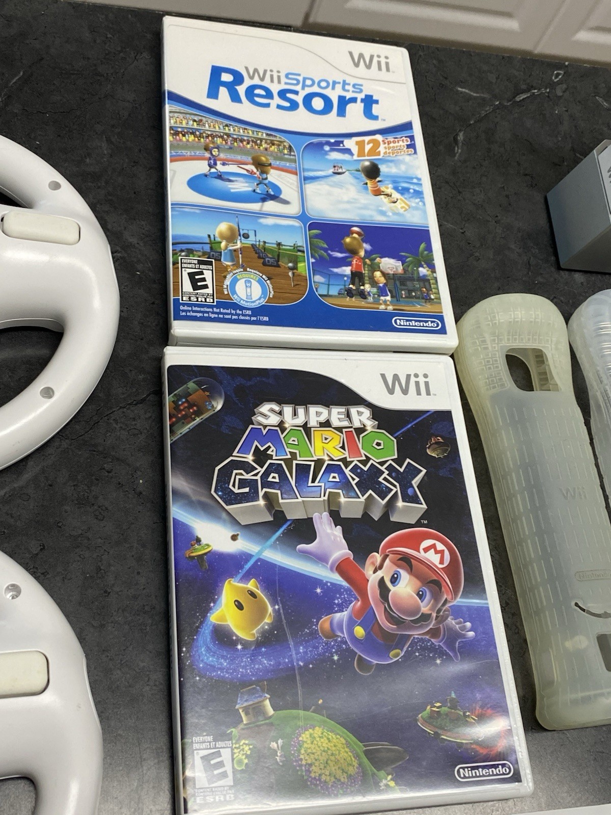 Nintendo Wii Console Bundle Mario Kart Wii Sports Resorts Mario Galaxy -10 Games
