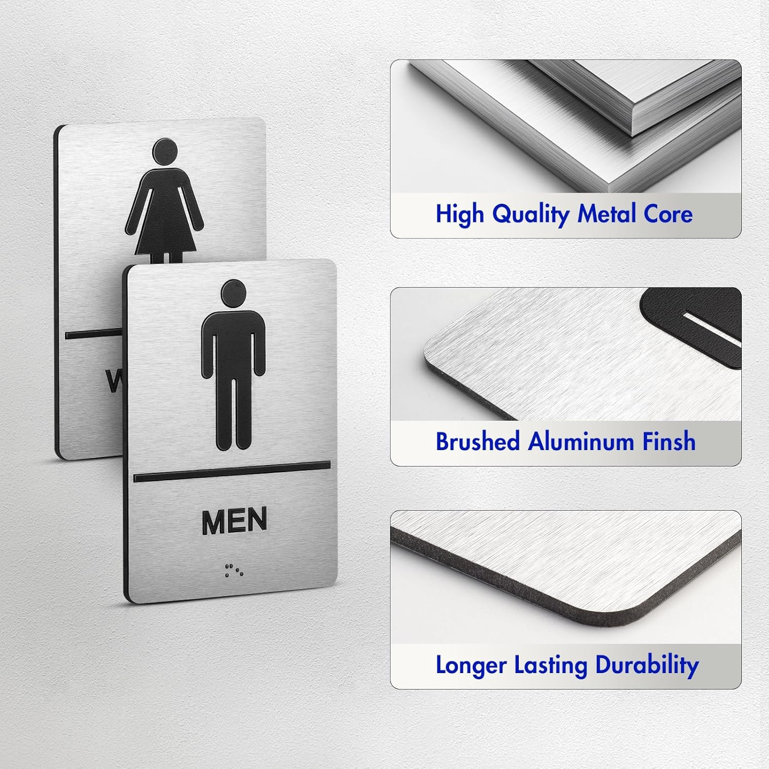 Bathroom Signs, Men's Women's Restroom Signs for Business, Brushed Aluminum AD