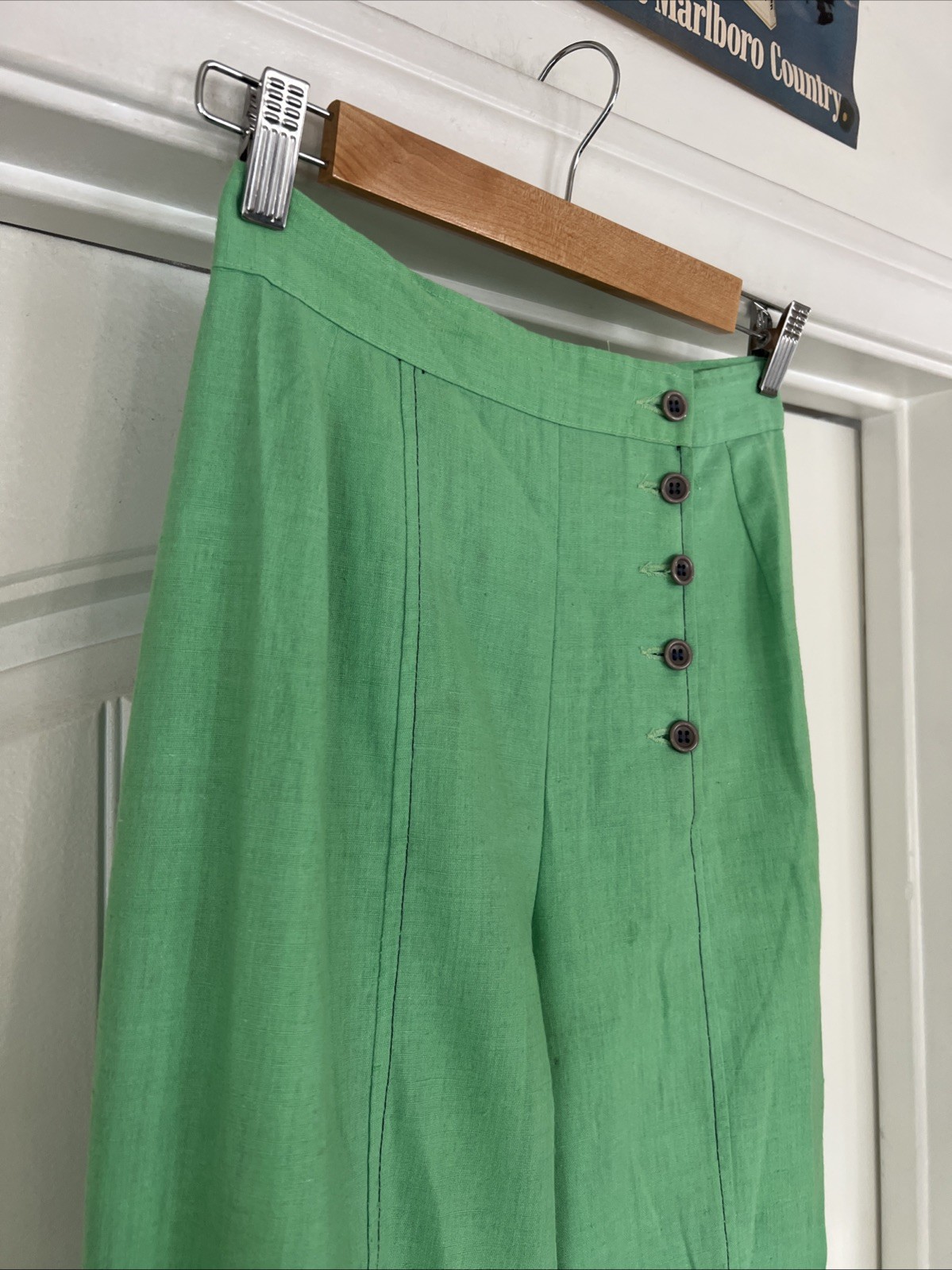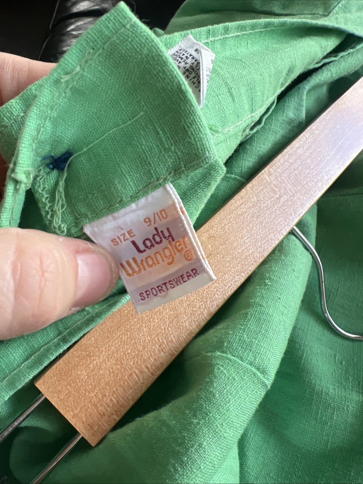 Vtg 70s Lady Wrangler Green High Rise Bell Bottoms Side Button Groovy Retro XS