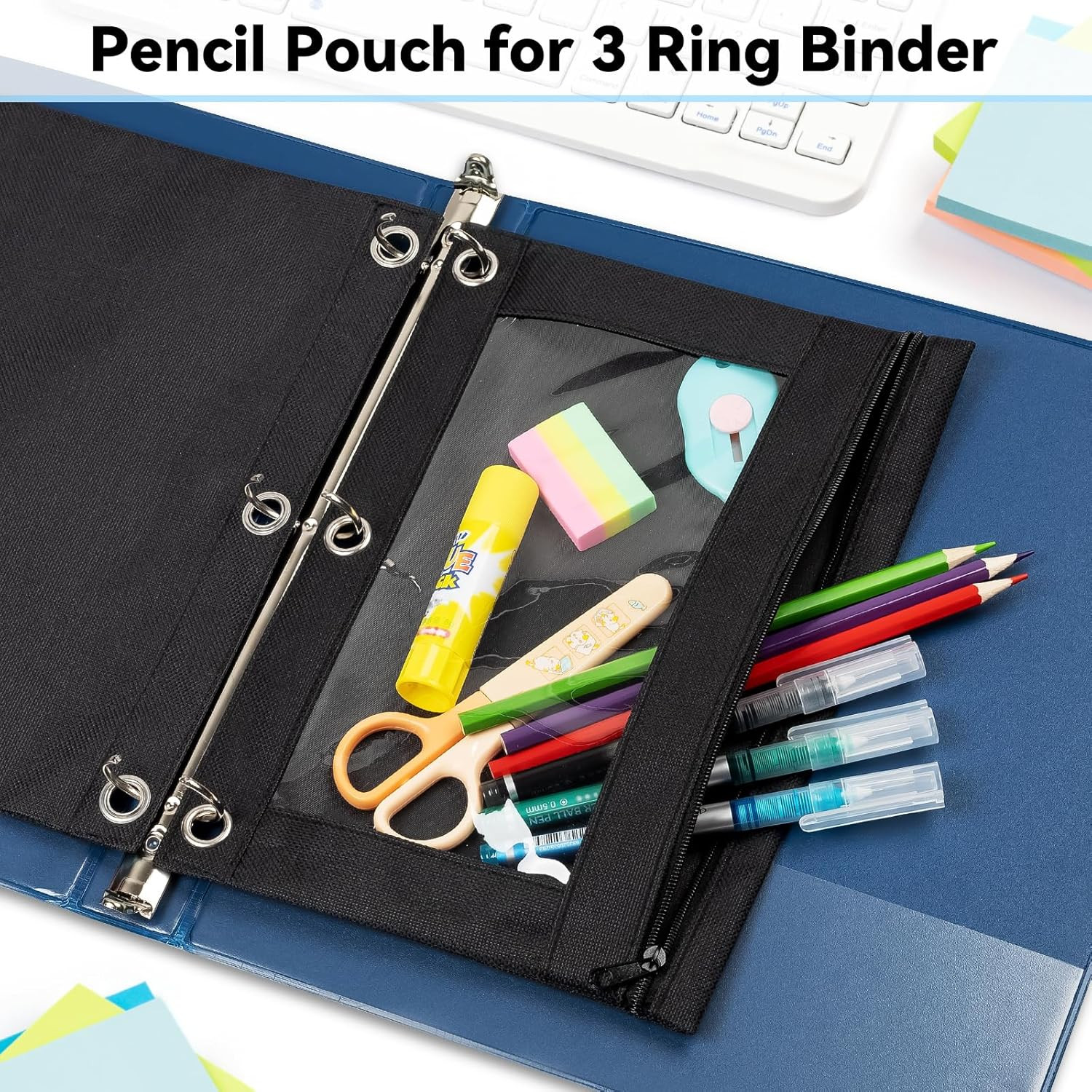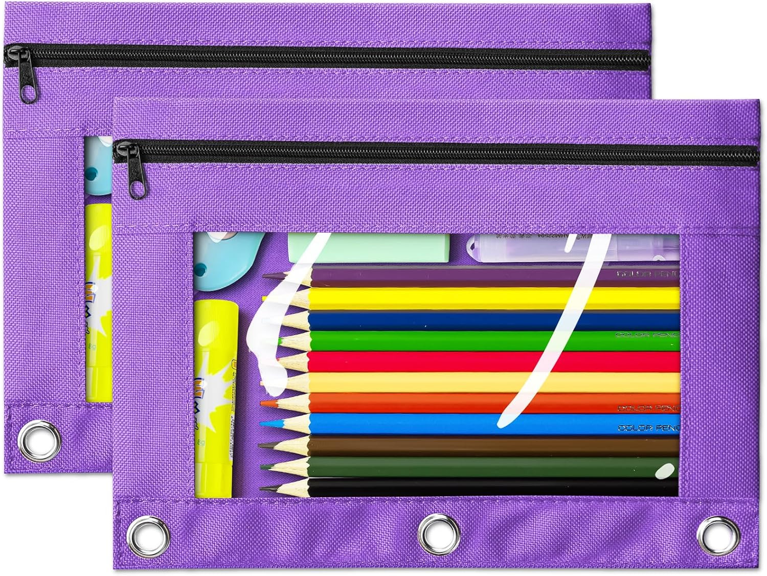 Pencil Pouch for 3 Ring Binder, 2 Pack Purple 3-Holes Zipper Pencil Pouches, Stu