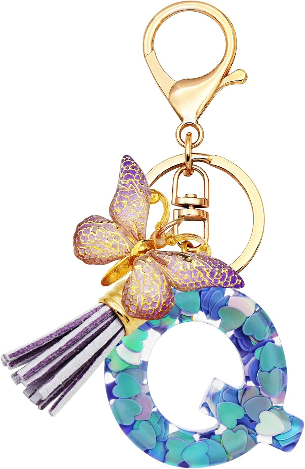 Initial Letter Keychains for Girls Women Pink Purple Green Cute Butterfly Heart