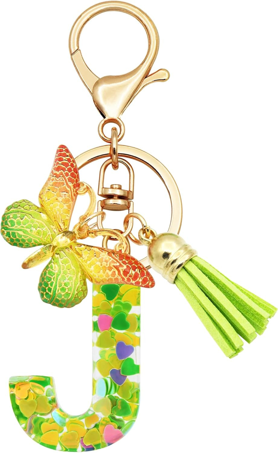 Initial Letter Keychains for Girls Women Pink Purple Green Cute Butterfly Heart