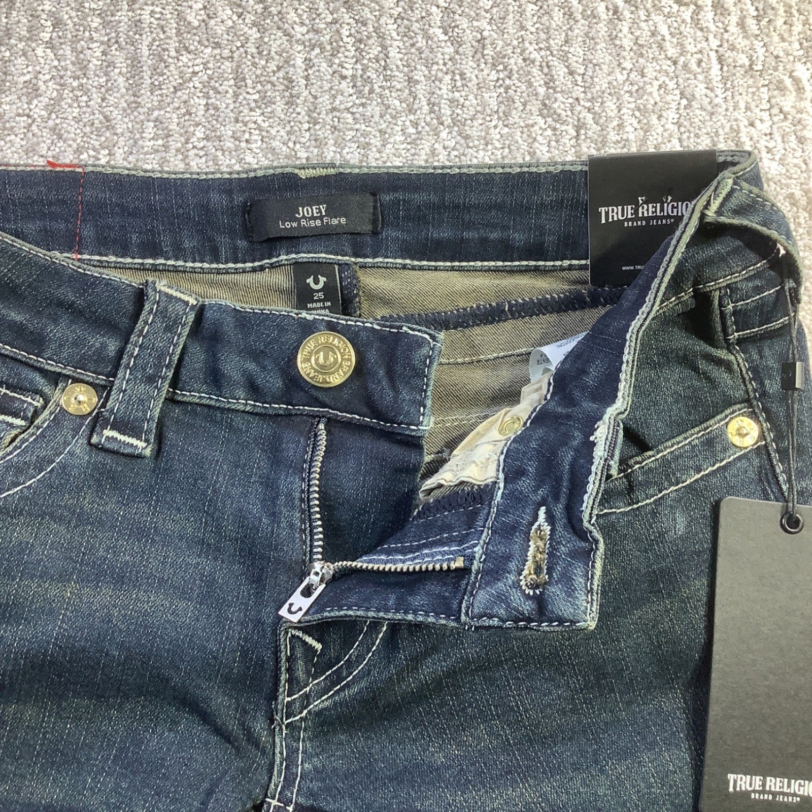 как выглядит True Religion Joey Low Rise Flare Flap Jeans Serenity Size 25 NWT фото