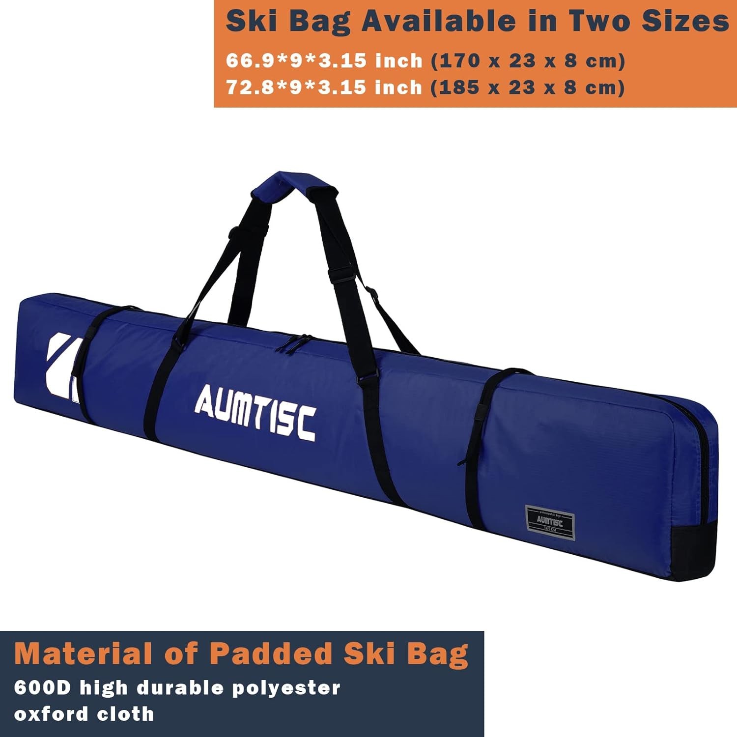 Fully Padded Ski Bag, Single Ski Travel Bags to Transport Skis Gear with Pocket
