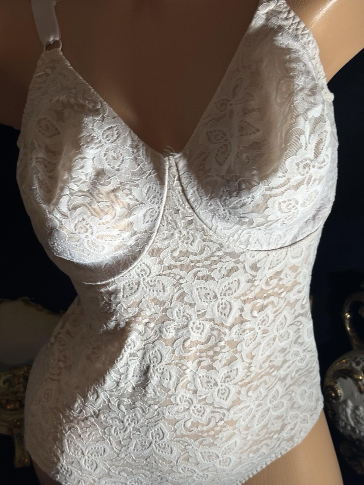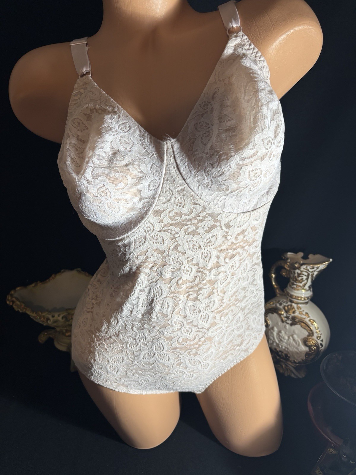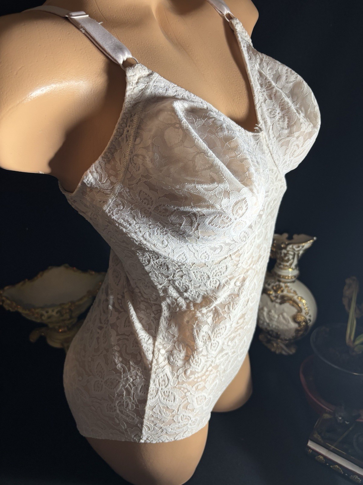 как выглядит Vtg Silky Nylon pantie girdle SHEER Lace girdle ALL IN ONE SHAPER BODYSUIT фото