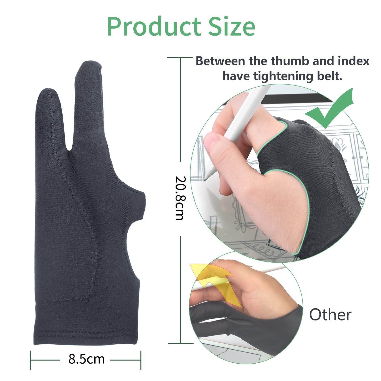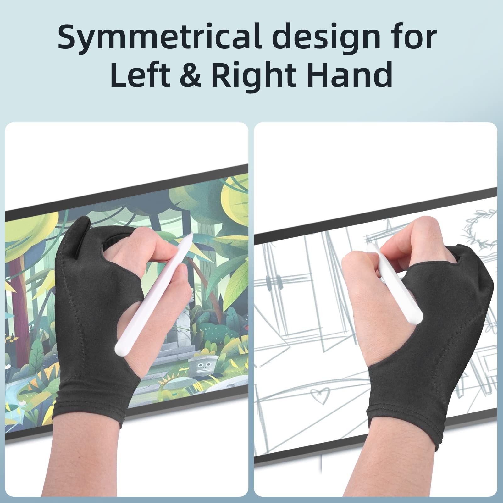 Artist Drawing Glove 3-Layer Palm Rejection 2 Pack Black Right Left Hand Di...