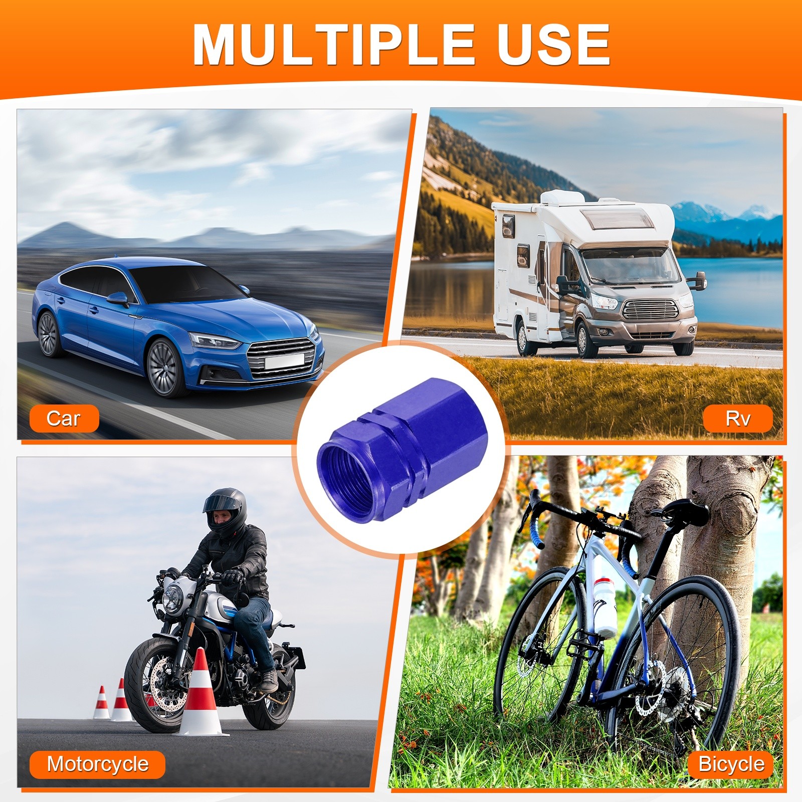 5Pcs Tire Valve Stem Caps Aluminum Alloy Tire Air Caps, Blue