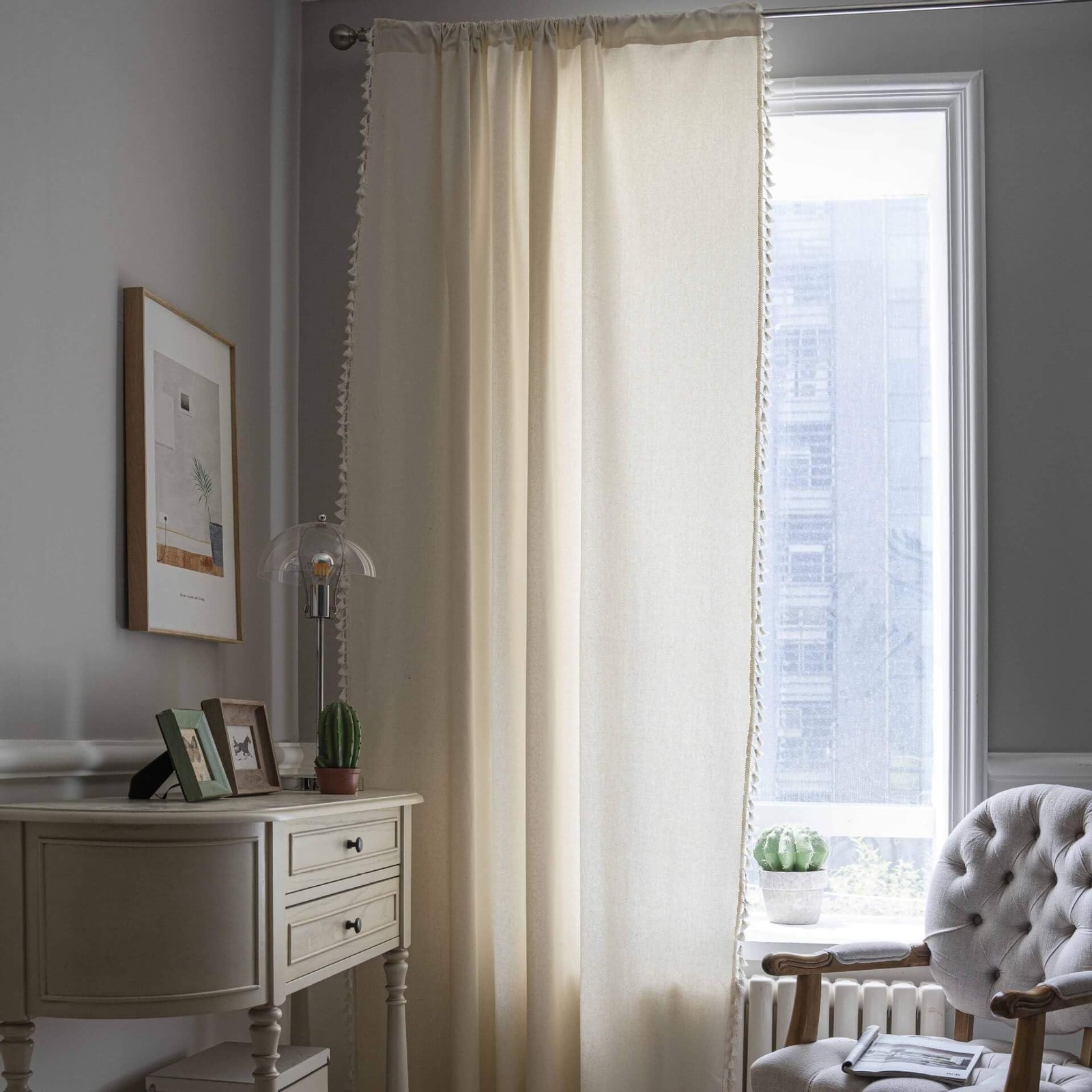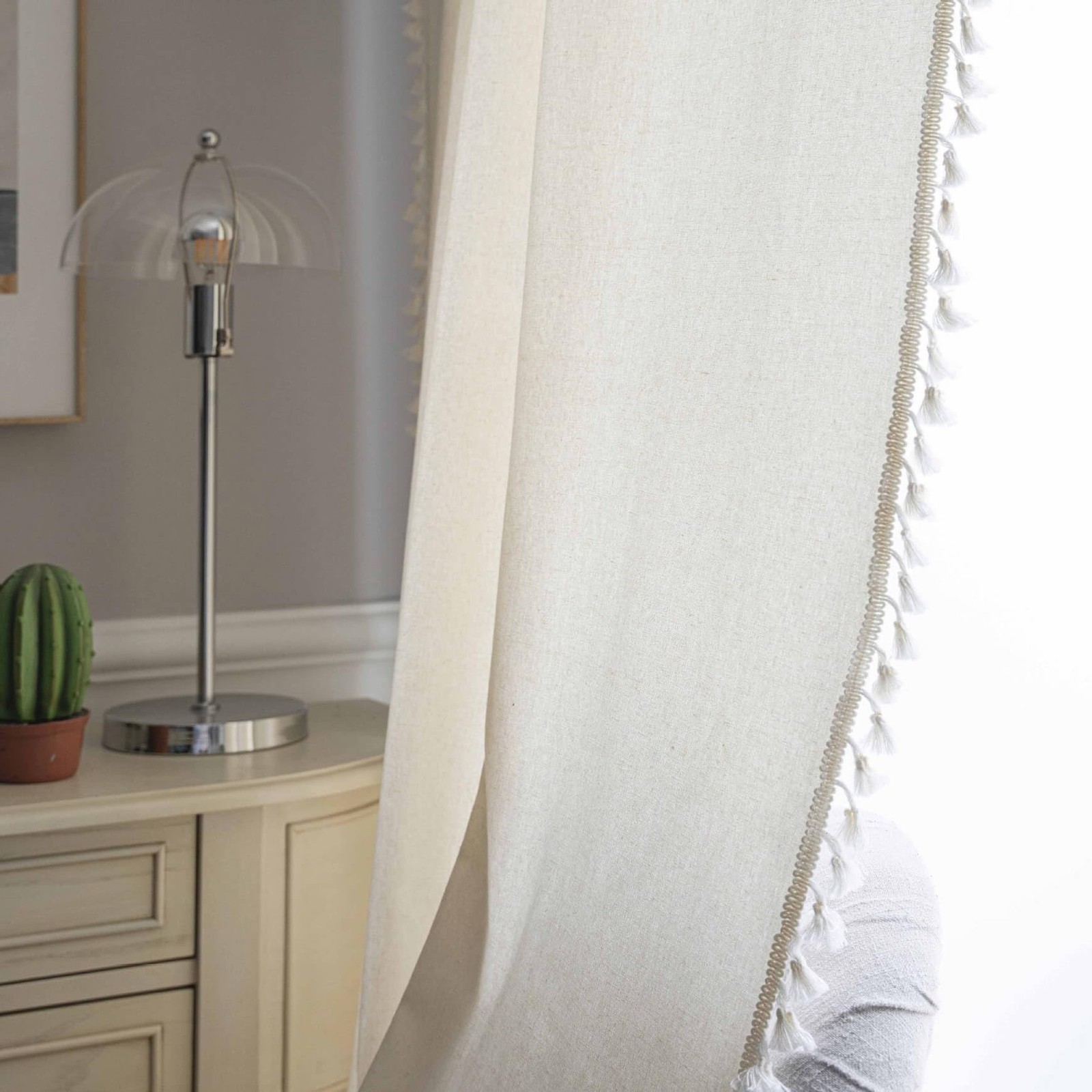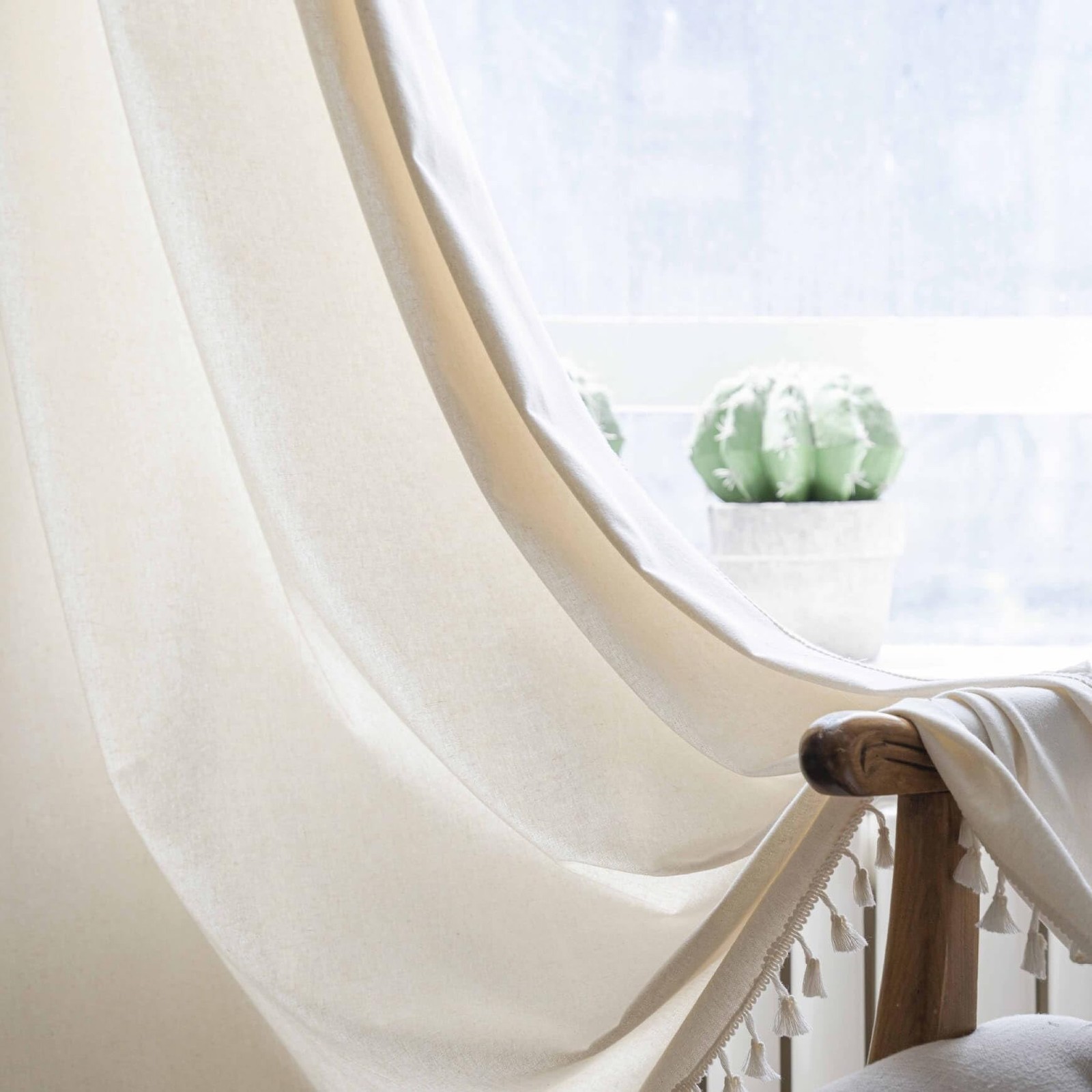 как выглядит Linen Boho Curtains 108 Inches Long 2 Panels Set Bohemia Curtains for Bedroom... фото