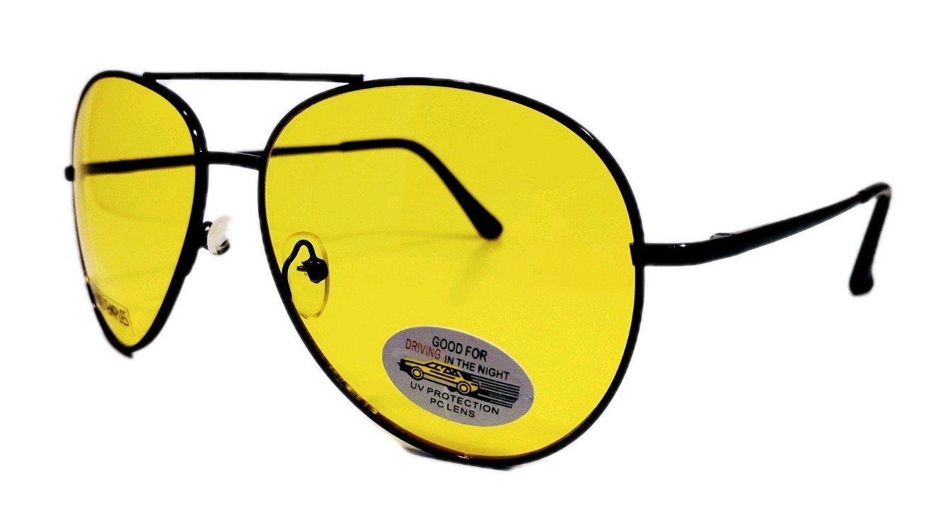 как выглядит Aviator Sunglasses W/Gun Metal Spring Temple Frame Yellow Night Driving Lenses фото