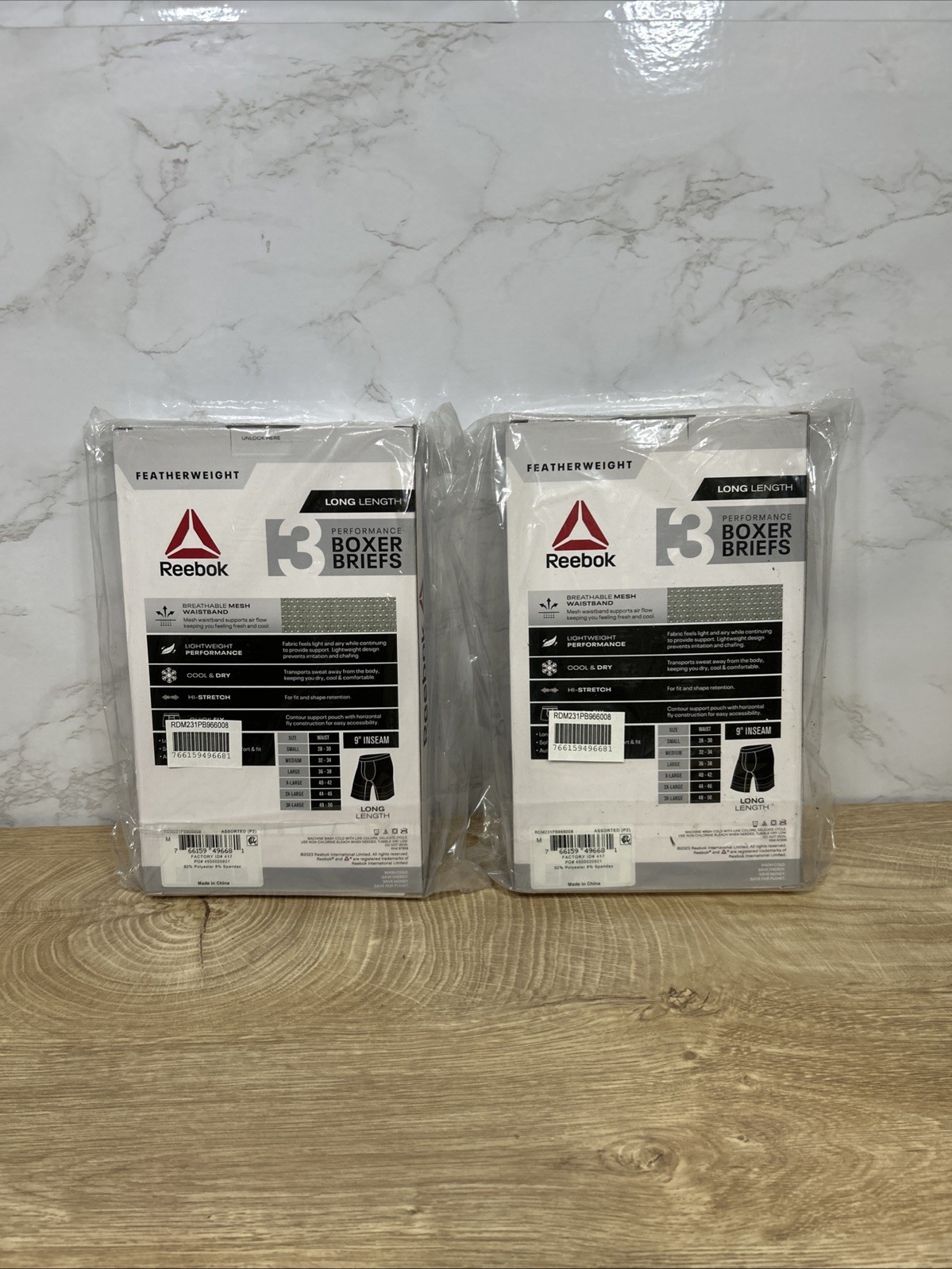 как выглядит Reebok Performance Featherweight Boxer Briefs 9" 3 Pack Sz Medium New 2 Packs фото