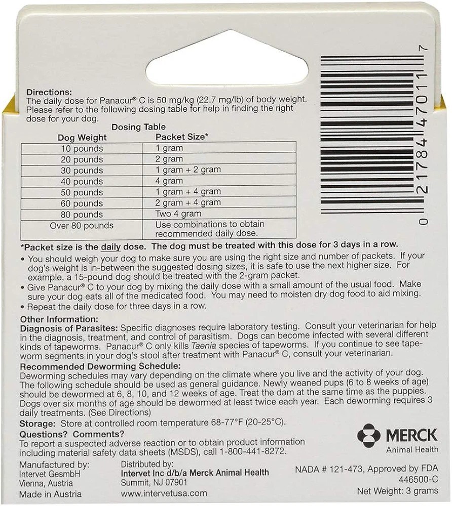 Panacur C Canine Dewormer Fenbendazole , 1 Gram, Yellow, 3 Count Pack of 1