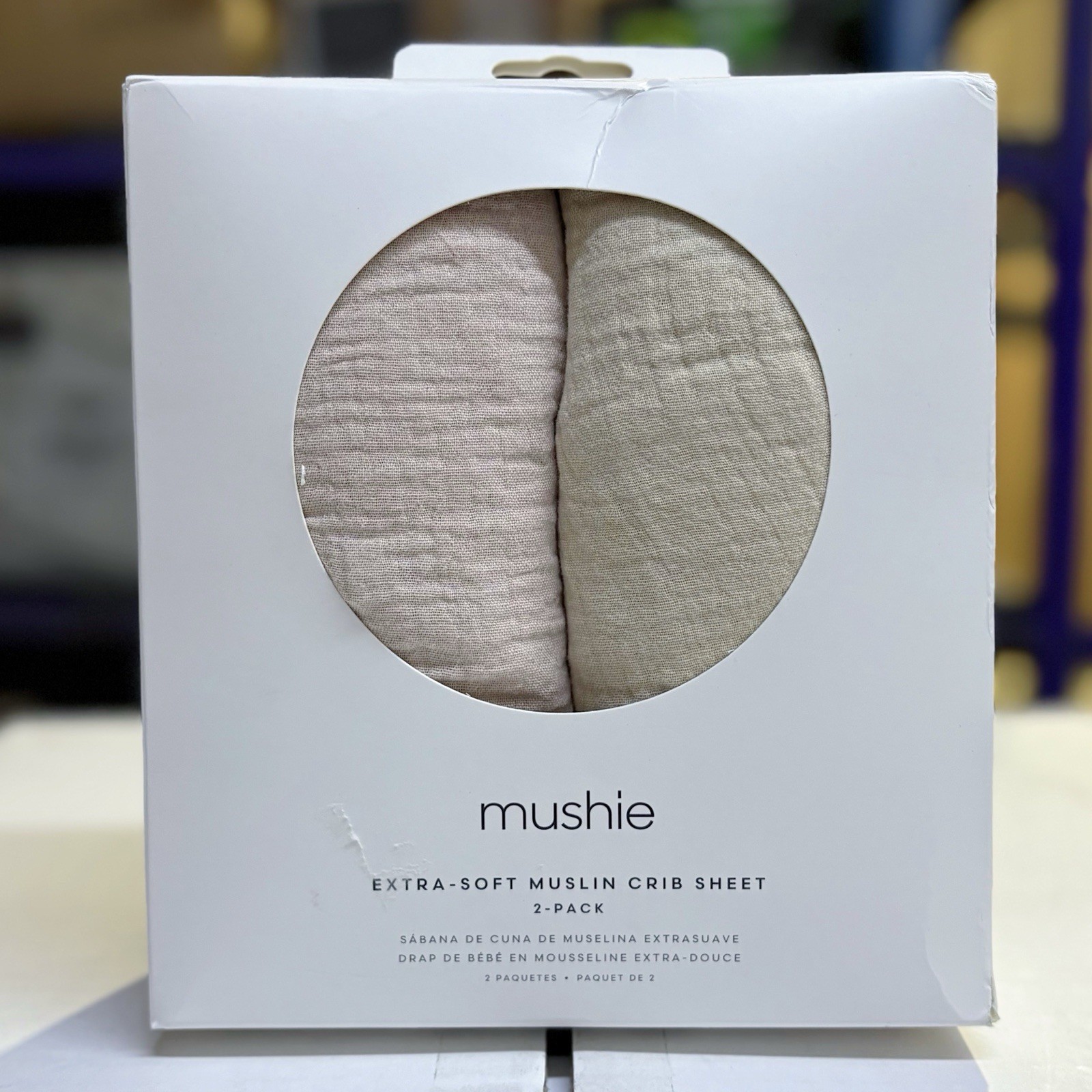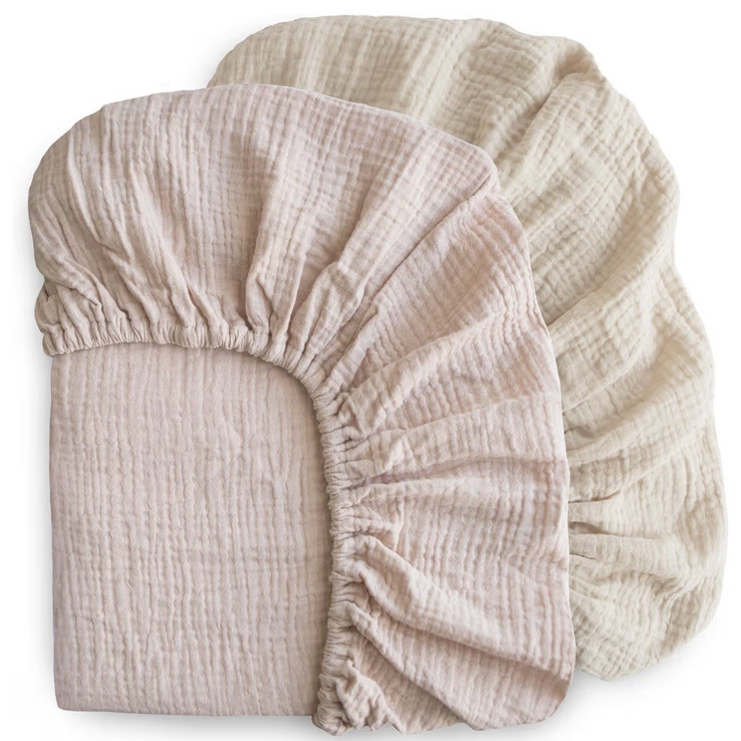 New Mushie Extra Soft Muslin Crib Sheet in Blush/Fog 28 x 52 - 2 Pack