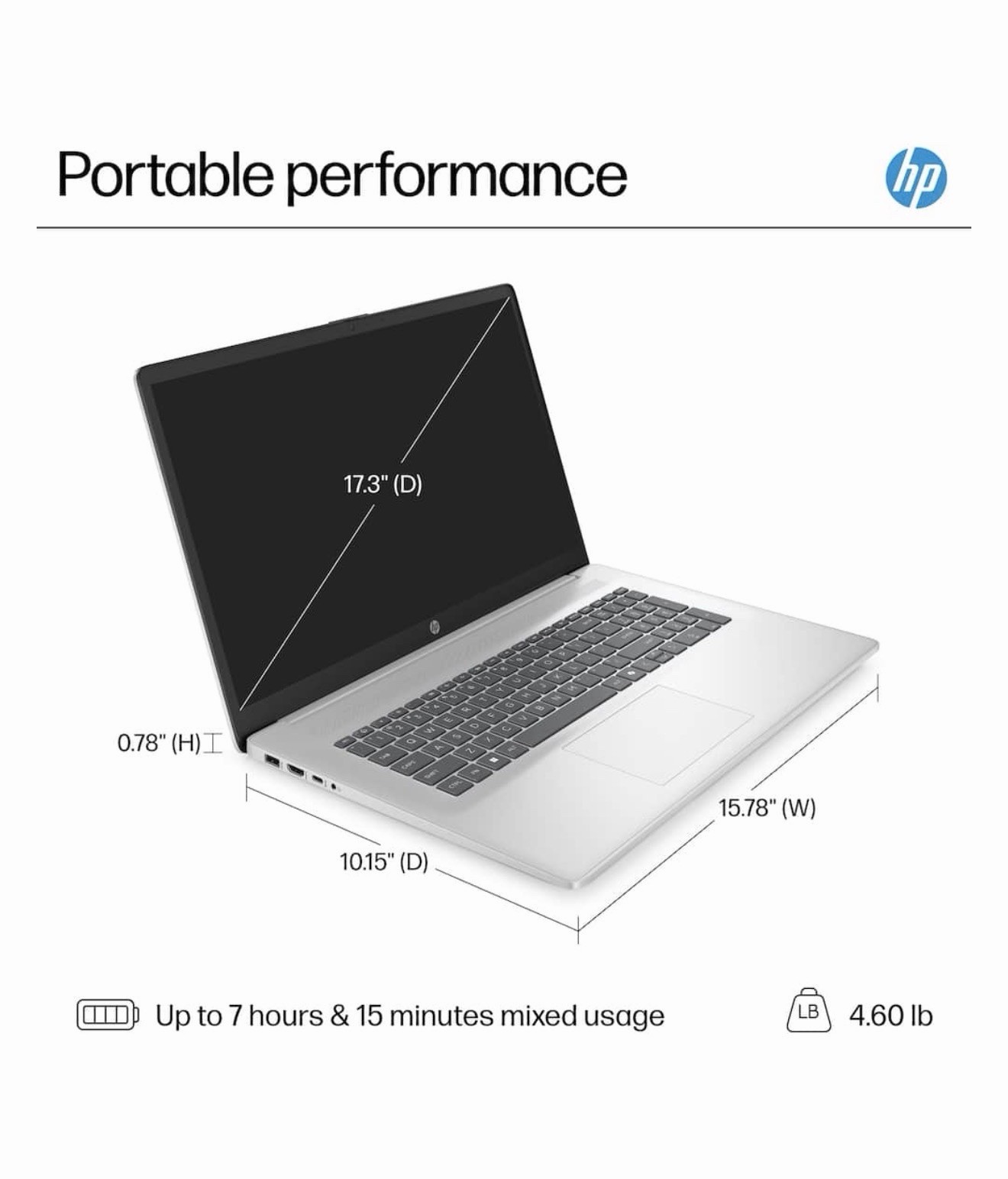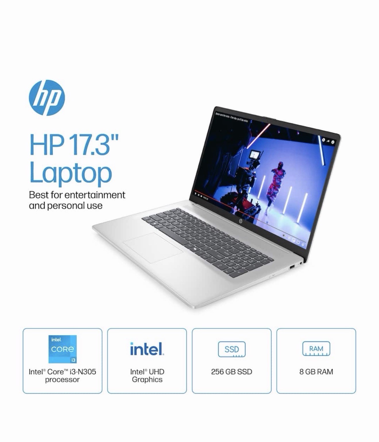 New HP 17.3 HD Laptop - Intel Core i3 N305 - 8 GB Memory - 256 SSD - Silver