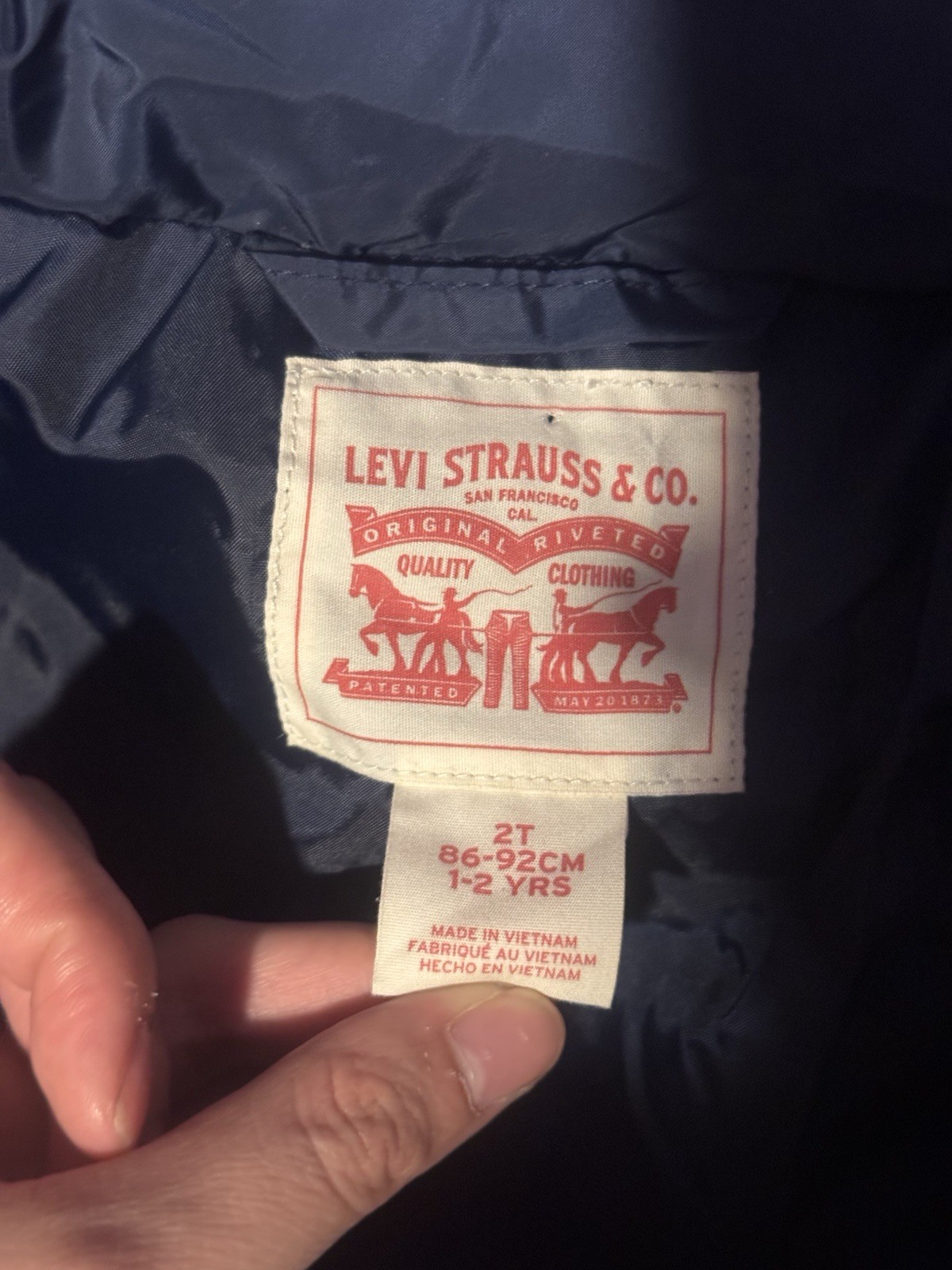 LEVI S Boy s Puffer Jacket Blue With Hood Water Resistant Zip Front