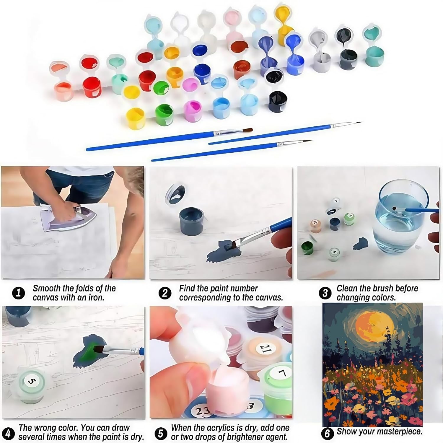 как выглядит Flowers Paint by Numbers for Adults Beginner, Moon Wildflowers Paint by Number.. фото