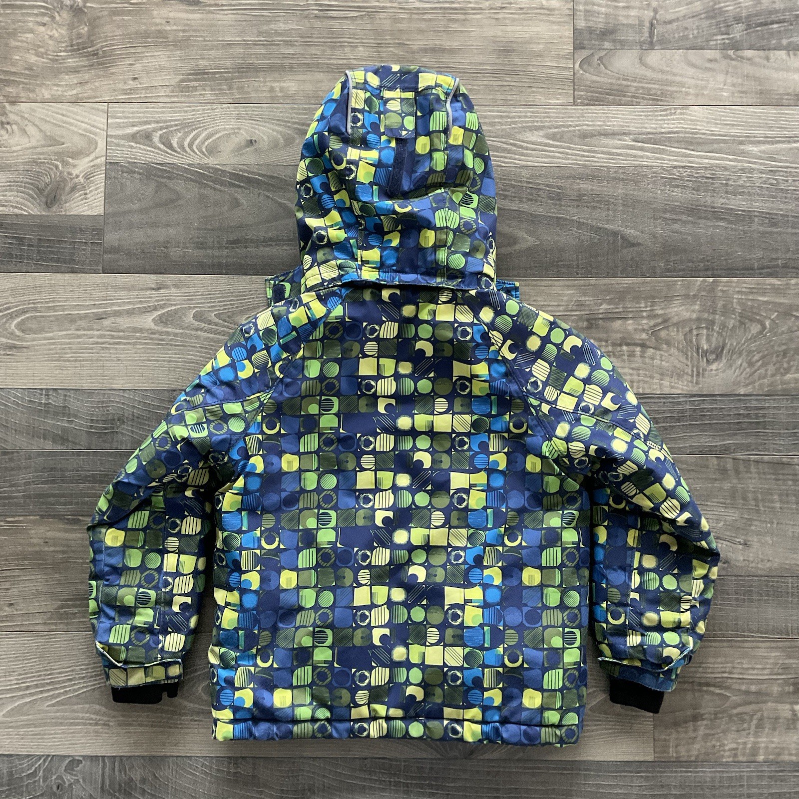 как выглядит Kamik Winter Snow Coat Jacket Kids Size 4 Blue Green Yellow Hooded Fleece Lined фото