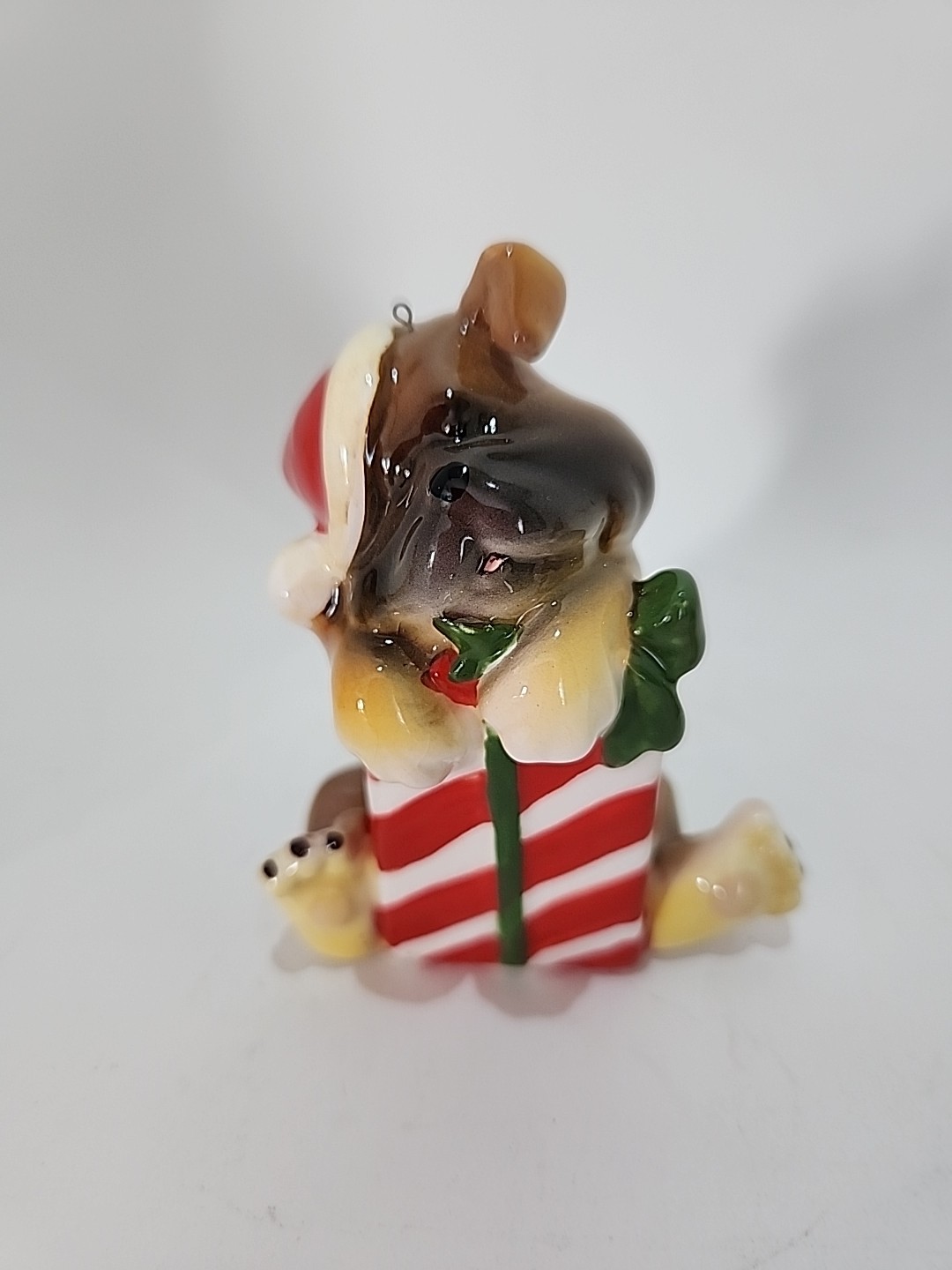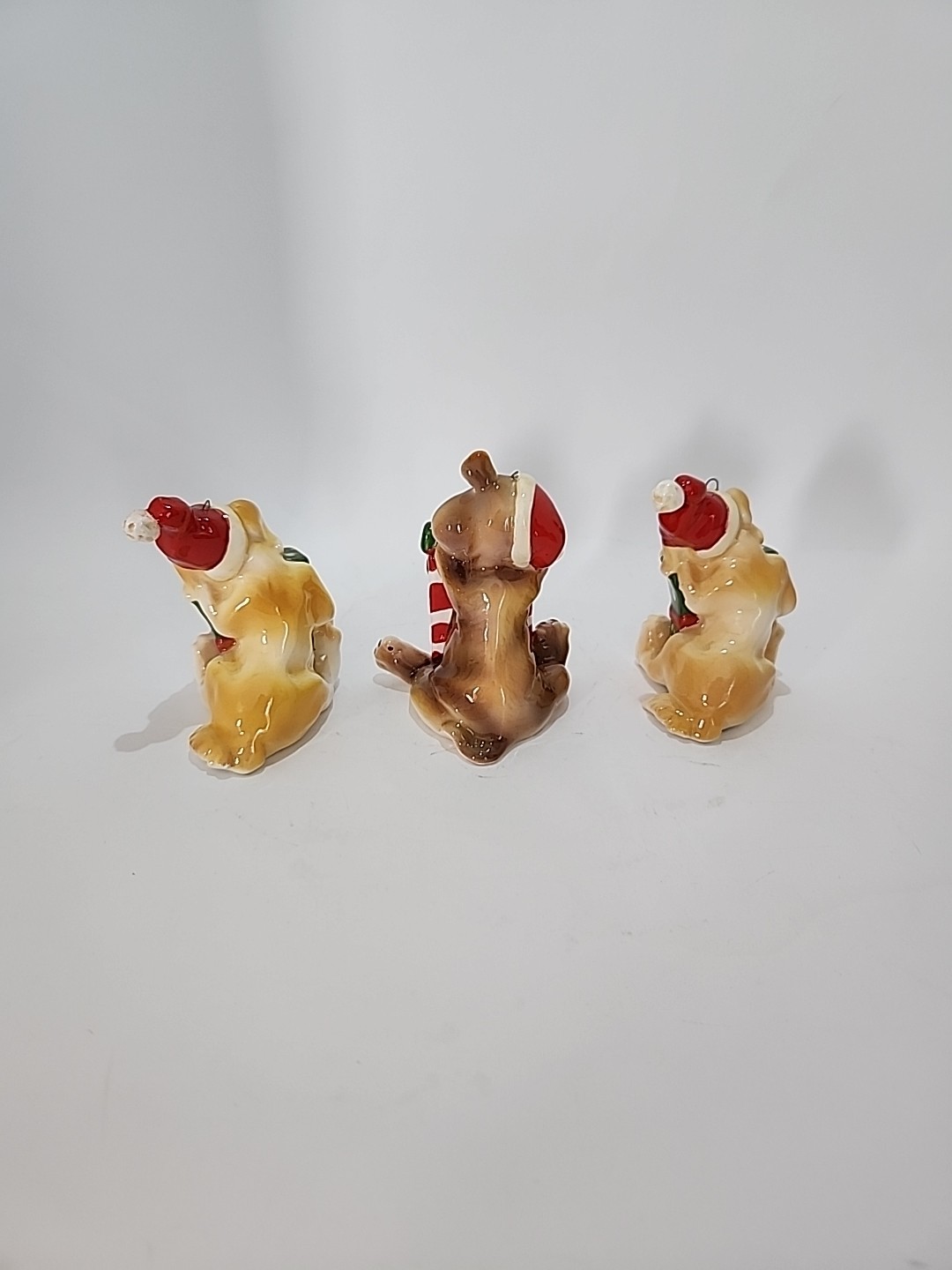 • Set Of 3 Vintage Dog With Christmas Present Ornaments Ceramic