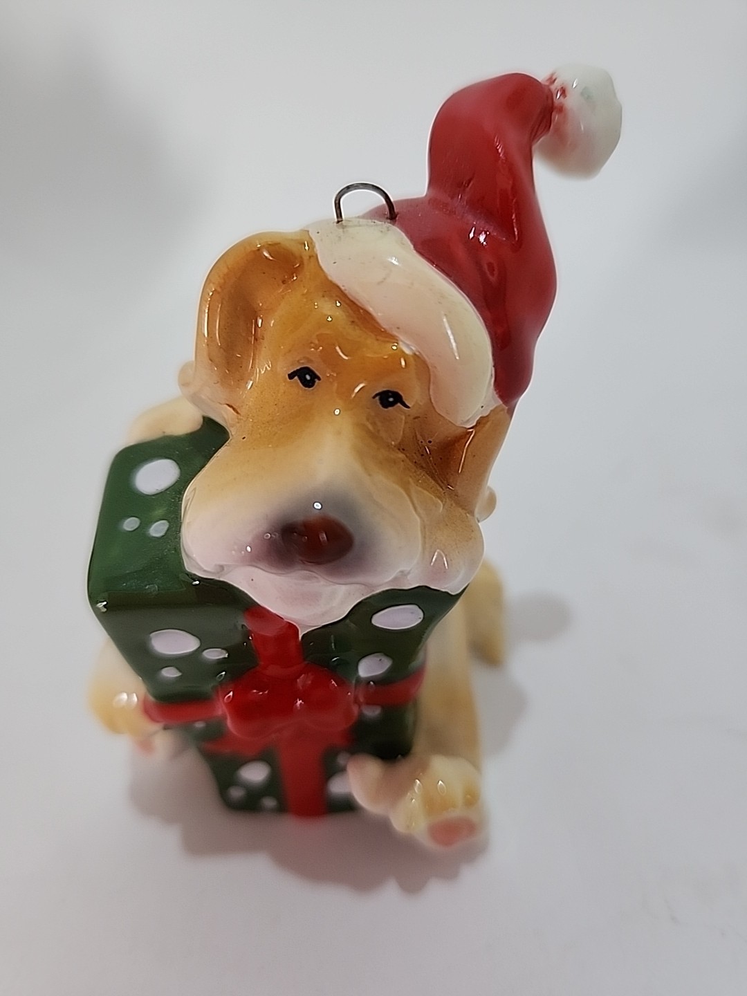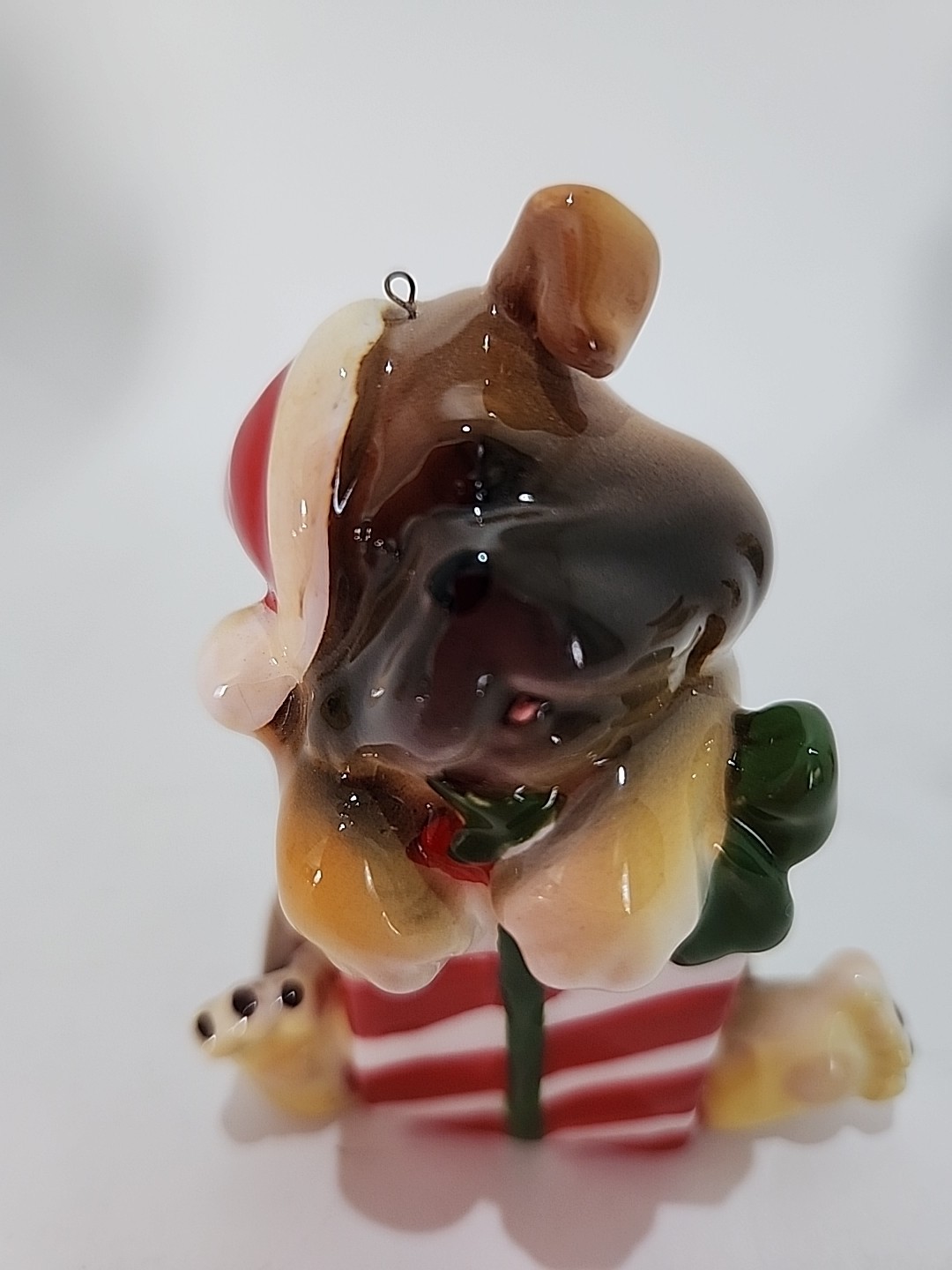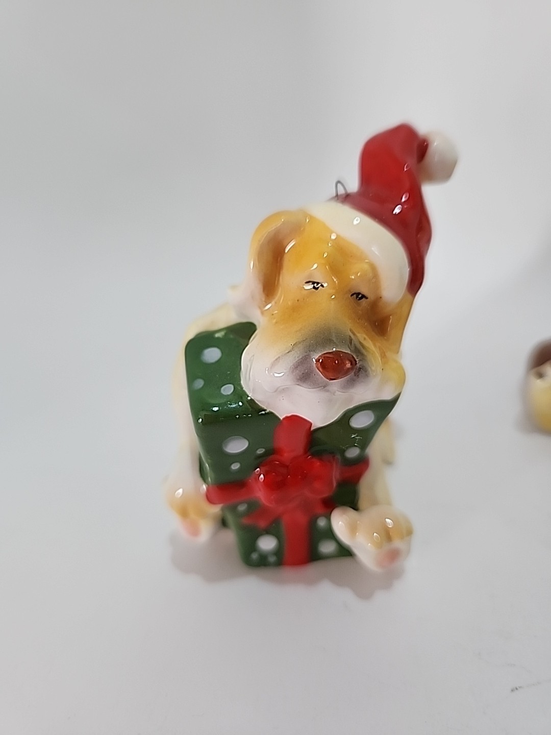 как выглядит Set Of 3 Vintage Dog With Christmas Present Ornaments Ceramic фото