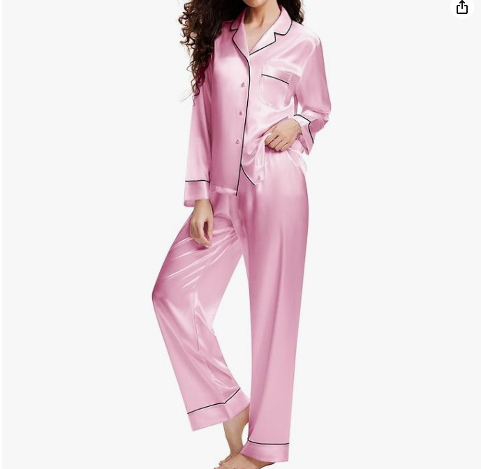 как выглядит Lonxu Pink Silk Satin Womens Pajama Sets Button Down Sleepwear Loungewear фото