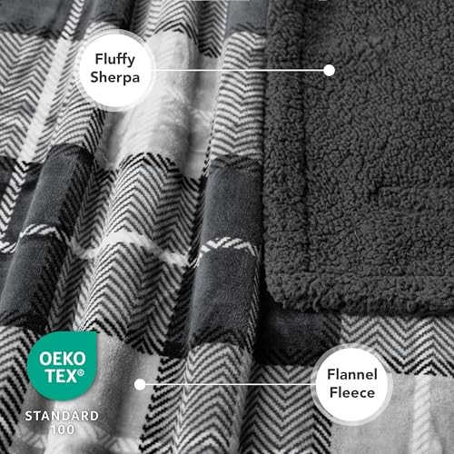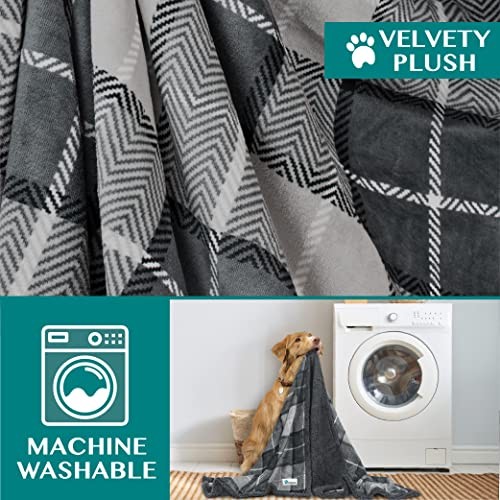 Dog Blanket for Bed, XL Pet X-Large - 80 x 60 Inches Plaid Charcoal Grey
