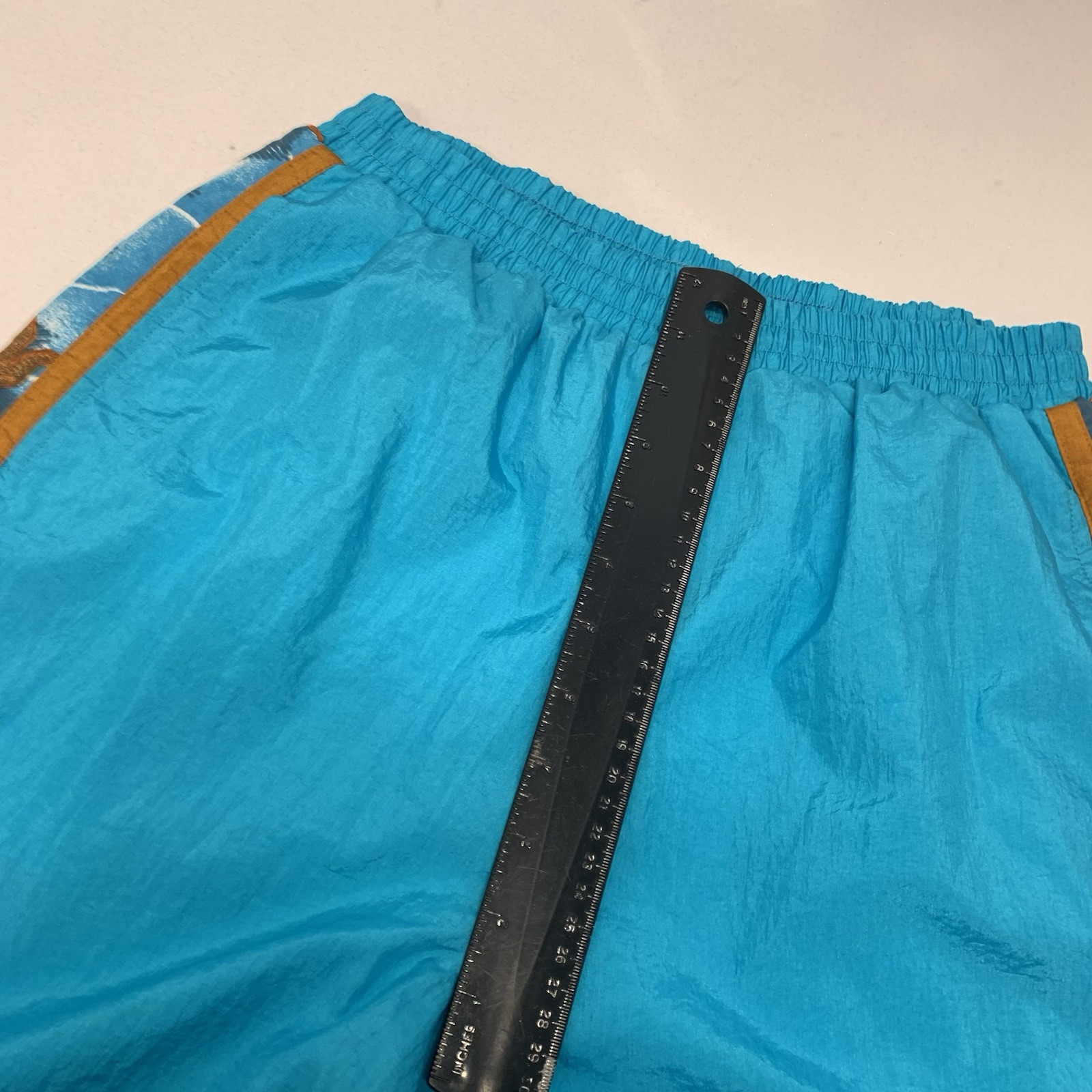 как выглядит Vintage 80s Nylon Track Pants Woman Medium Pull On Pockets Lined Zip Cuff Blue фото