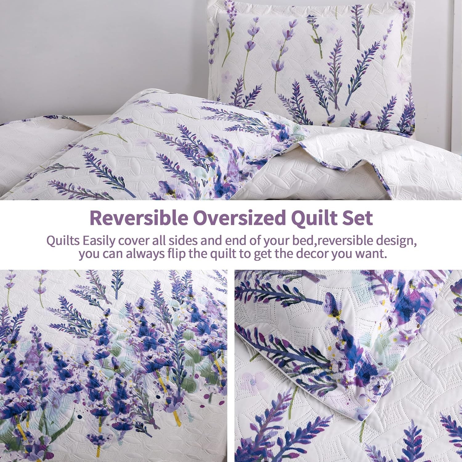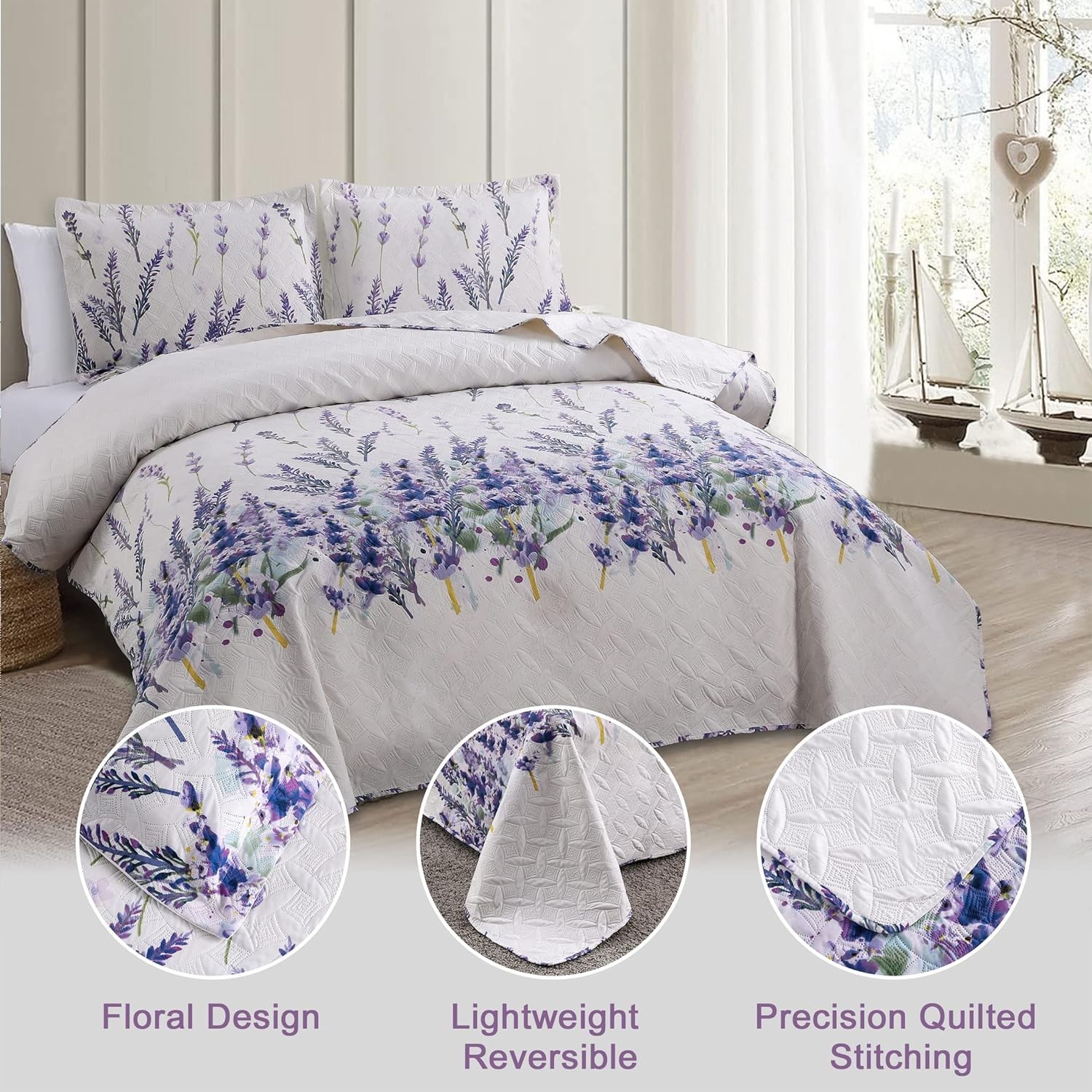 Quilt Set Queen Size Bedspread Coverlet Queen/Full, Purple Floral Butterfly