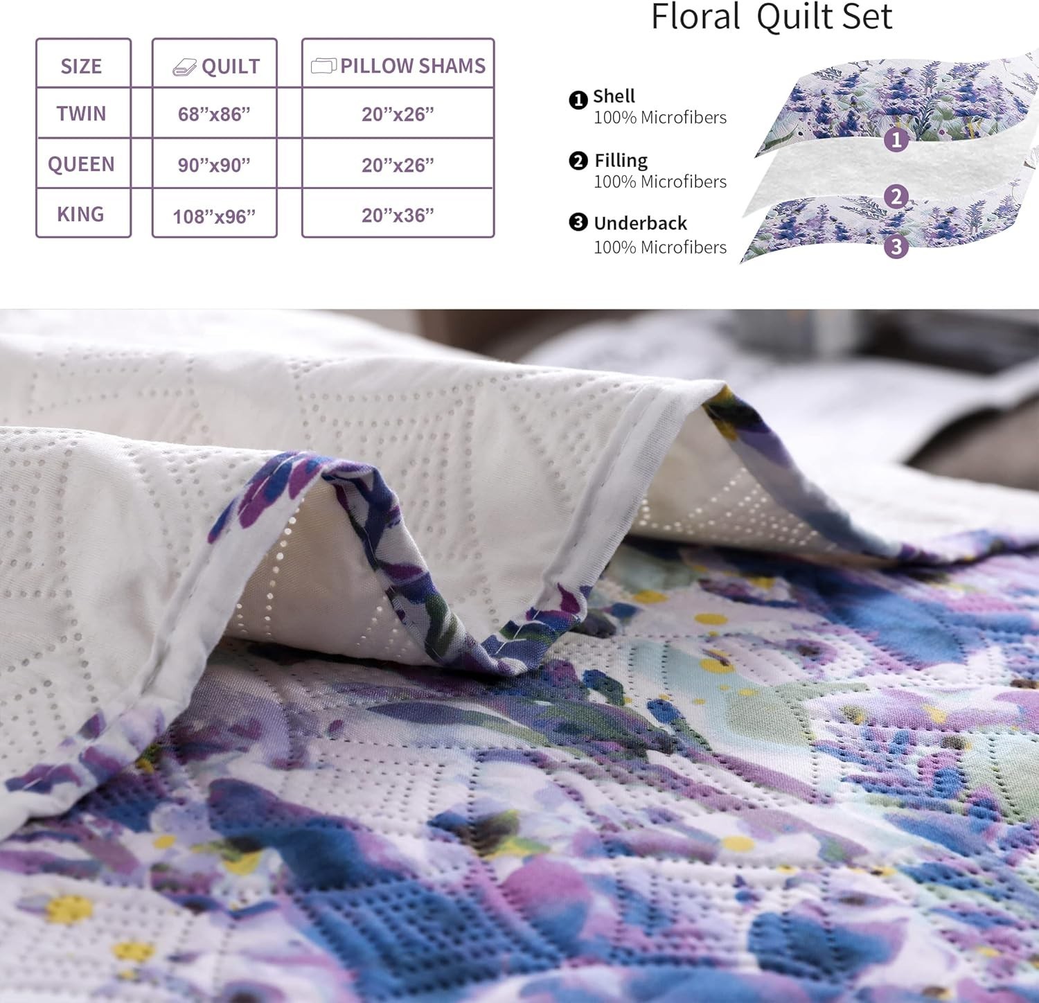 как выглядит Quilt Set Queen Size Bedspread Coverlet Queen/Full, Purple Floral Butterfly фото