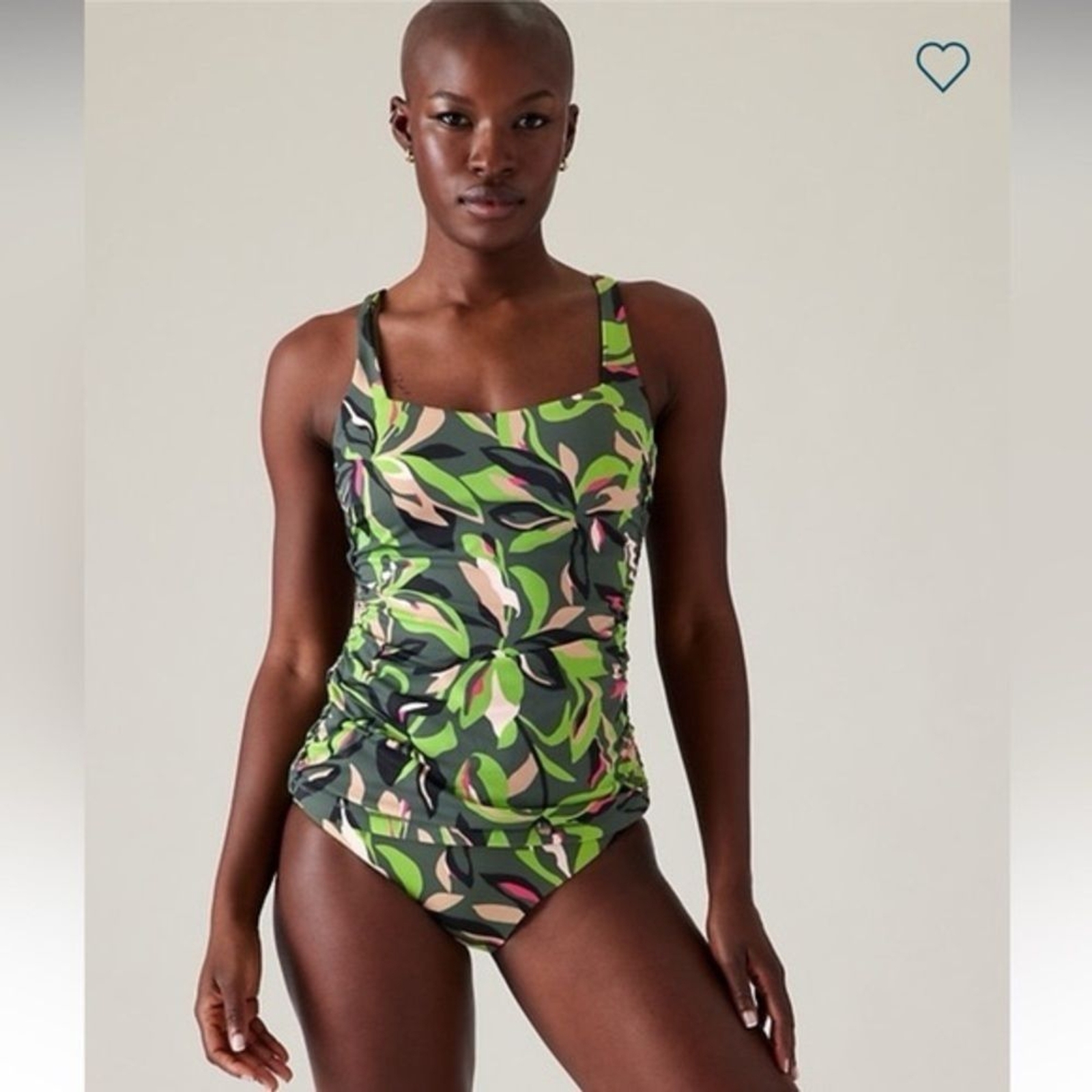 как выглядит Athleta square neck bra cup tankini set size small 34 B/C фото