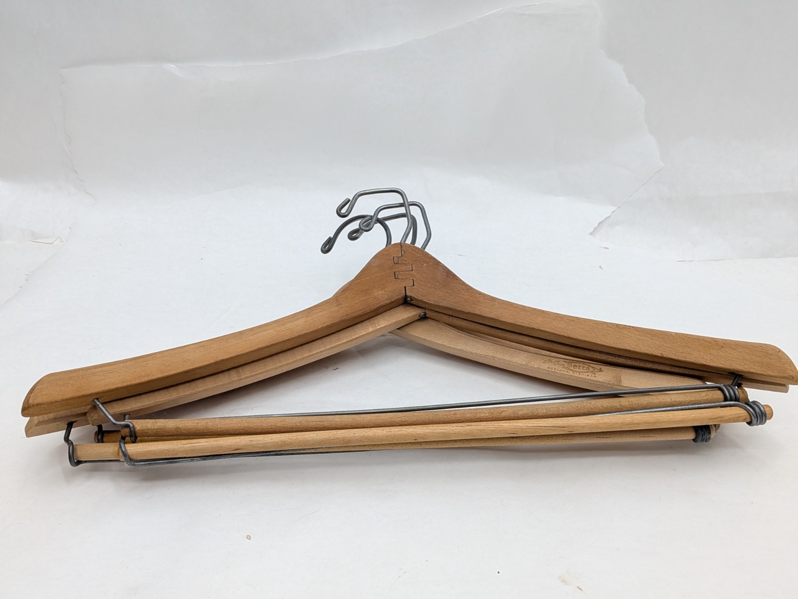 как выглядит Vintage WISHBONE Wooden Suit Hangers with Pant Bars Heavy Duty Lot 4 Stamped фото