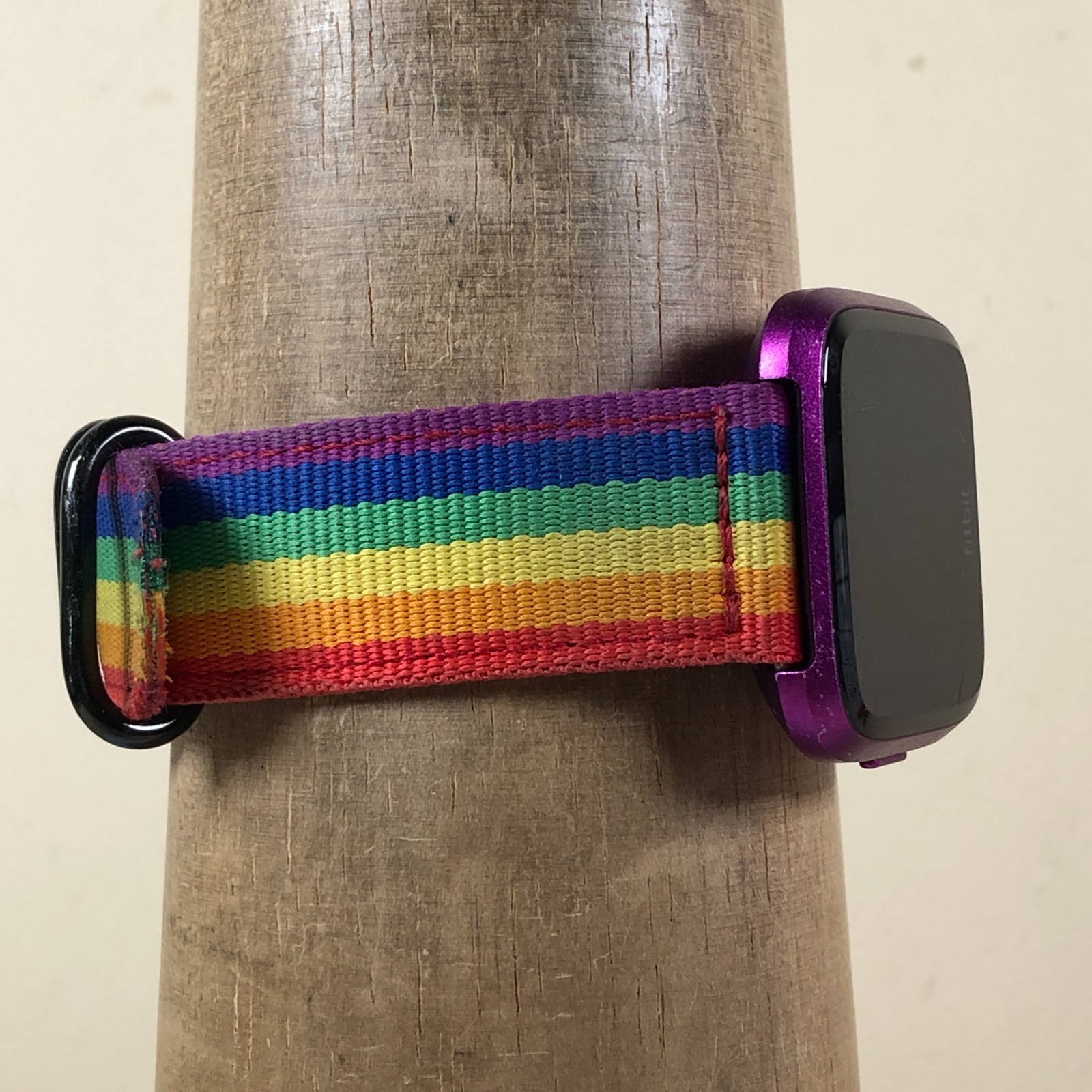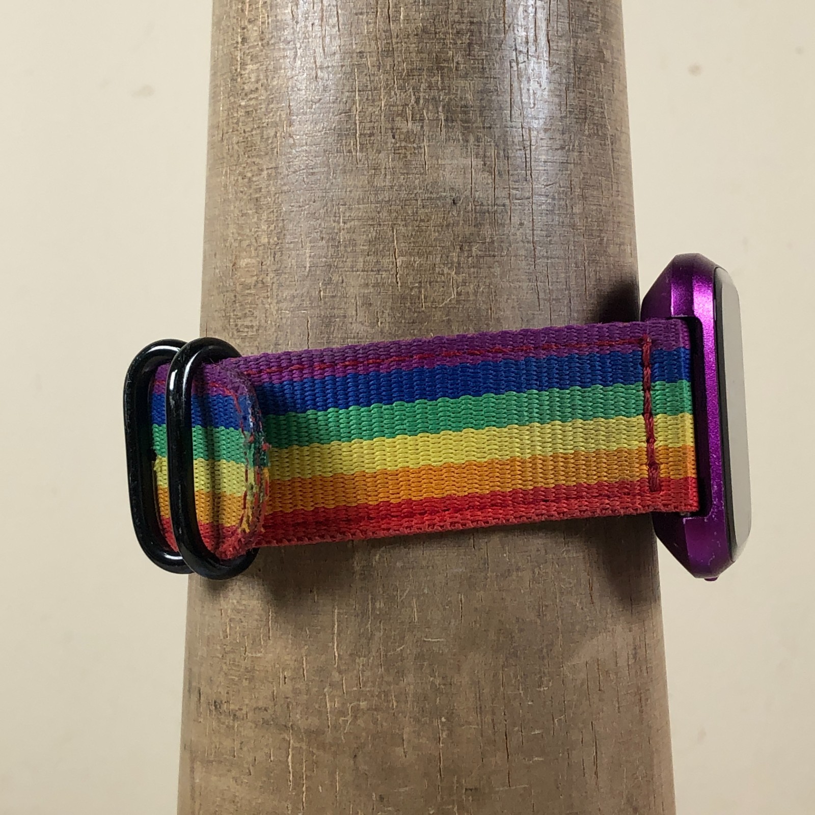 как выглядит Fitbit Versa Unisex FB415 Rainbow Nylon Health Fitness Tracker Watch 7 3/4" фото