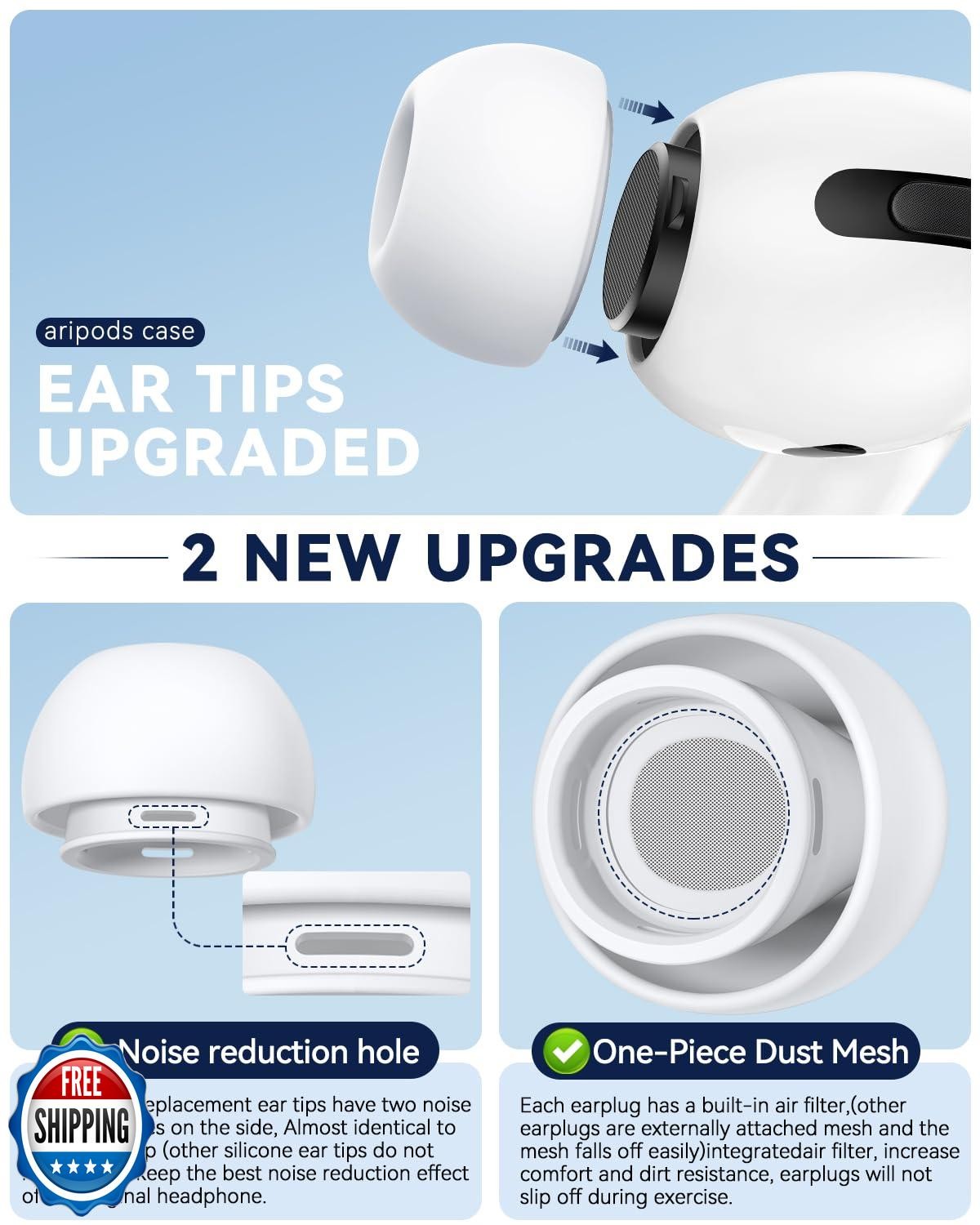 4 Pairs Replacement Ear Tips for AirPods Pro 2nd/1st Generation,N