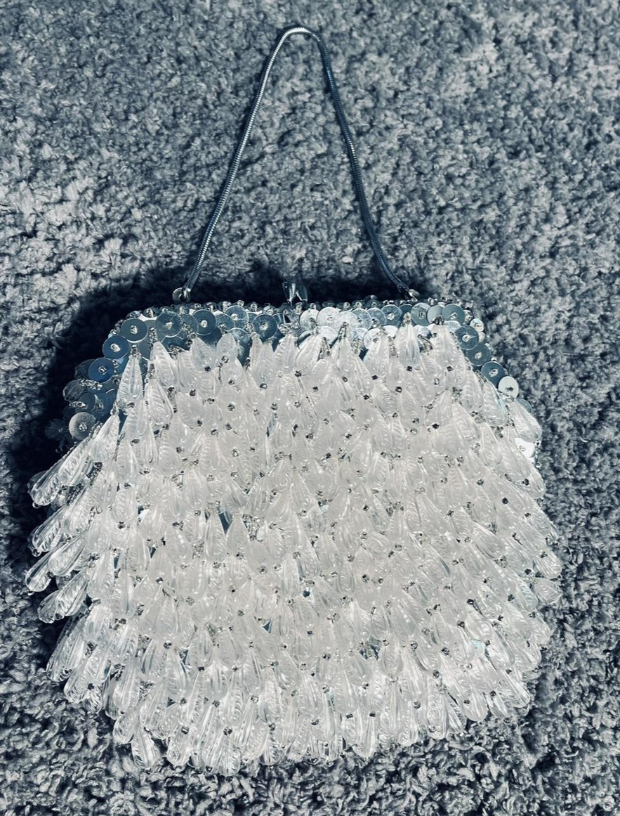 Vintage Walborg Evening Bag Womens White Beaded Timeless Purse Hong Kong