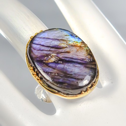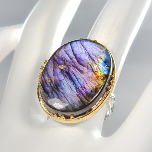 как выглядит 38 ct Jewelry Natural Labradorite Ring 925 Sterling Silver Size 8 /R446426 фото