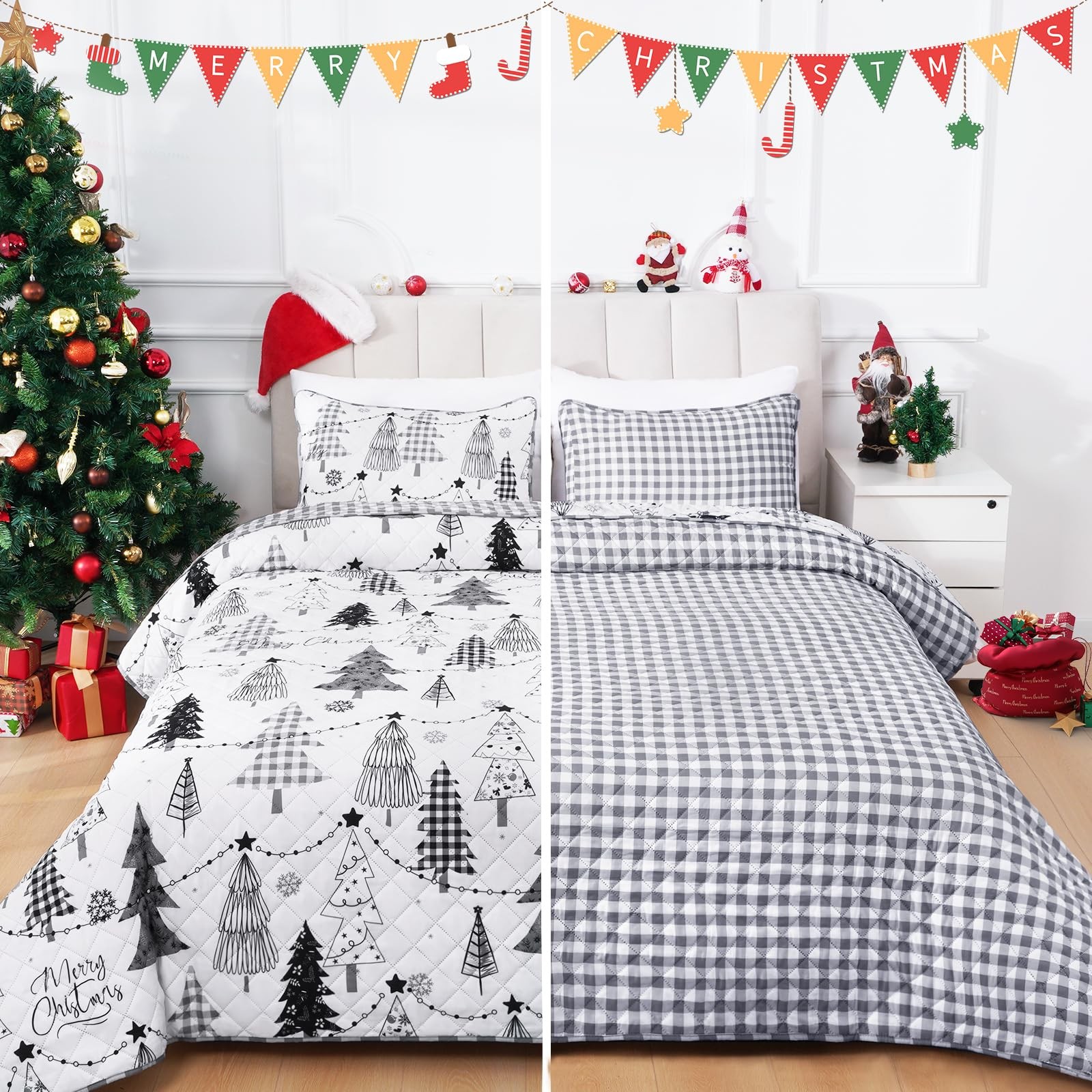 Christmas Quilt Set King, 3 Pieces Reversible Bedding Set with 2 Pillow Shams...