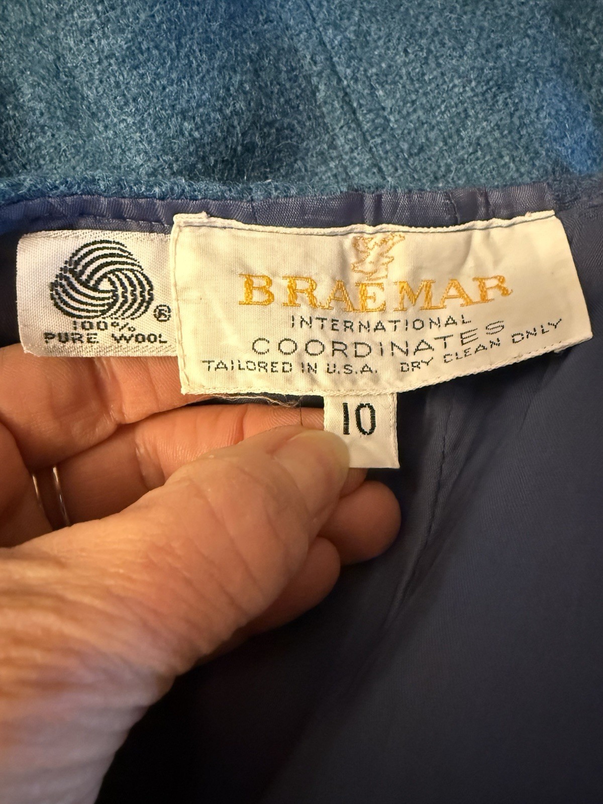 Vtg Braemar A-line Blue Pencil Womens Skirt USA 100 Wool Size 10