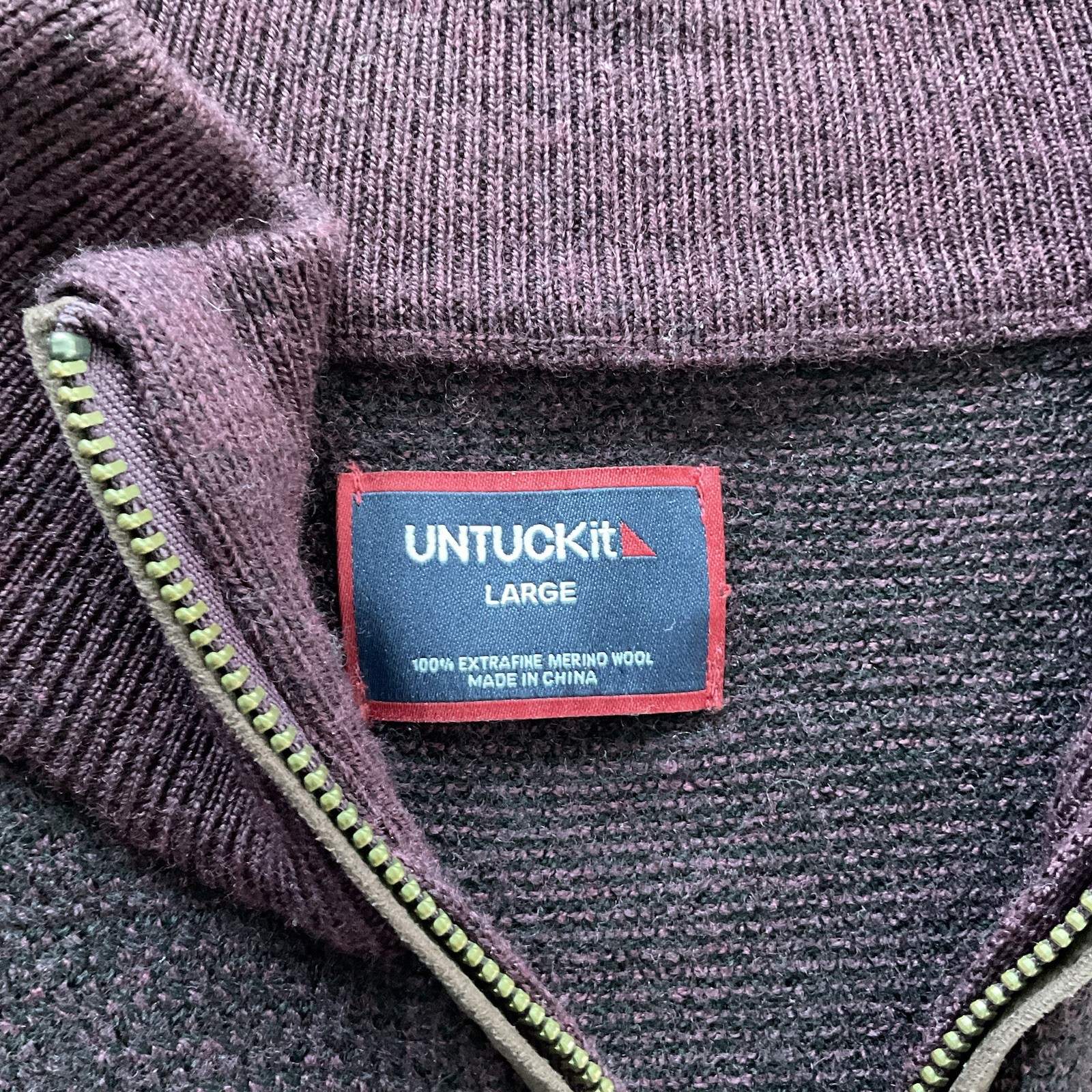 Untuckit Beiguardo Merino Wool 1/4 Zip Pullover Sweater Men s LARGE Maroon 41312
