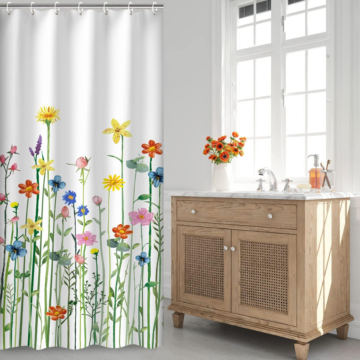 LIVILAN Stall Shower Curtain 36W X72H Inches RV Shower Curtains Floral Shower Cu