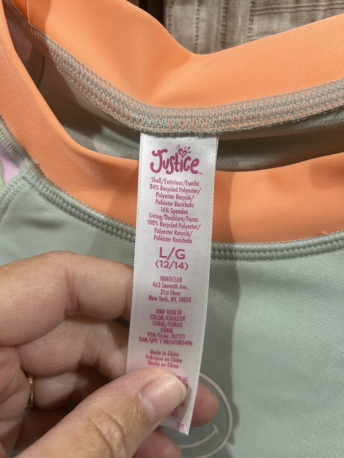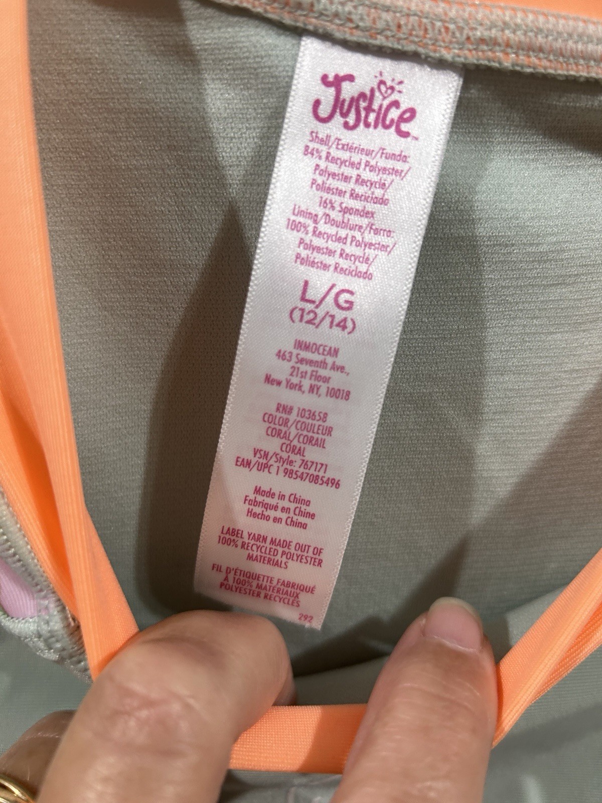 Justice Girls Green/orange L 12/14 Floral LS Rashguard With Hipster Bottom New