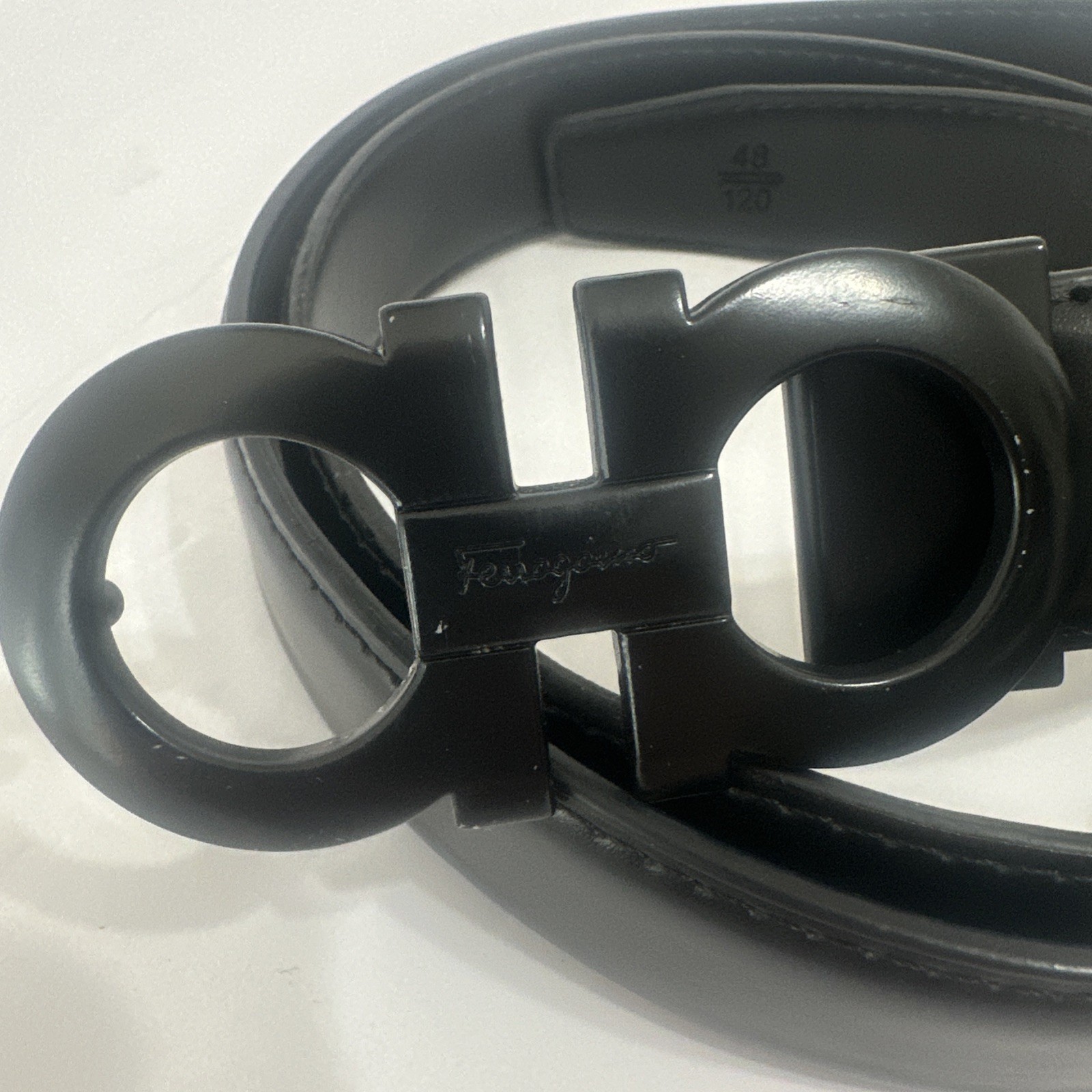 Salvatore Ferragamo Men Double Gancini Buckle Leather Belt - Designer Sz 48/120