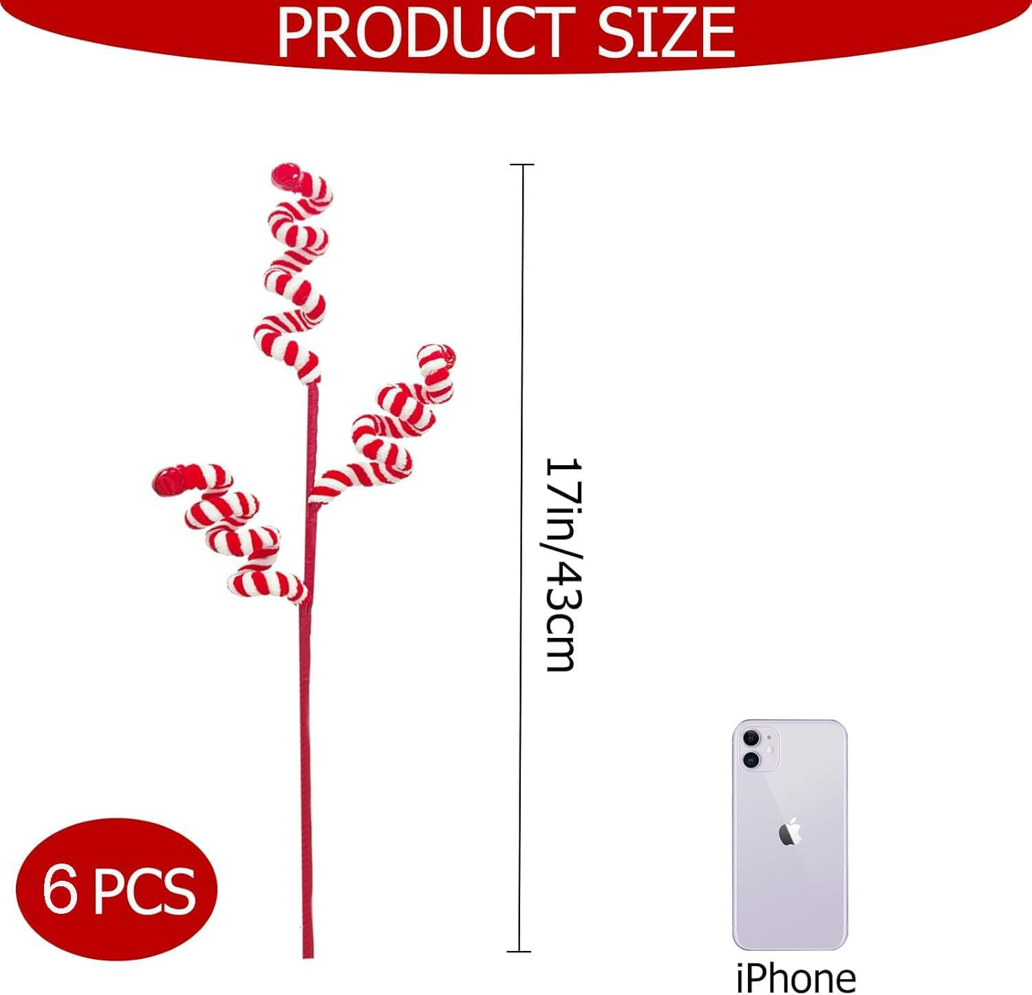 6 Pcs Candy Cane Christmas Decorations, 17 Inch Large Ornaments for Tree Picks,