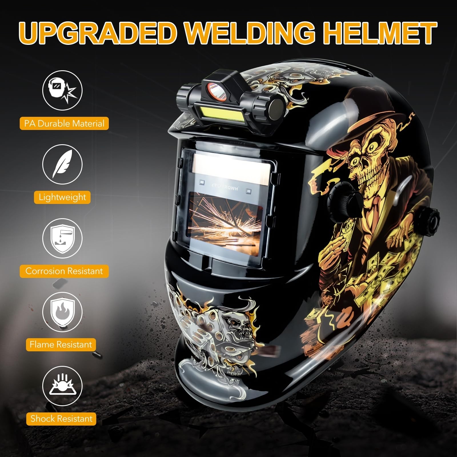 Solar Auto Darkening Welding Mask, True Color Wide View Shade 9-13 w LED Light