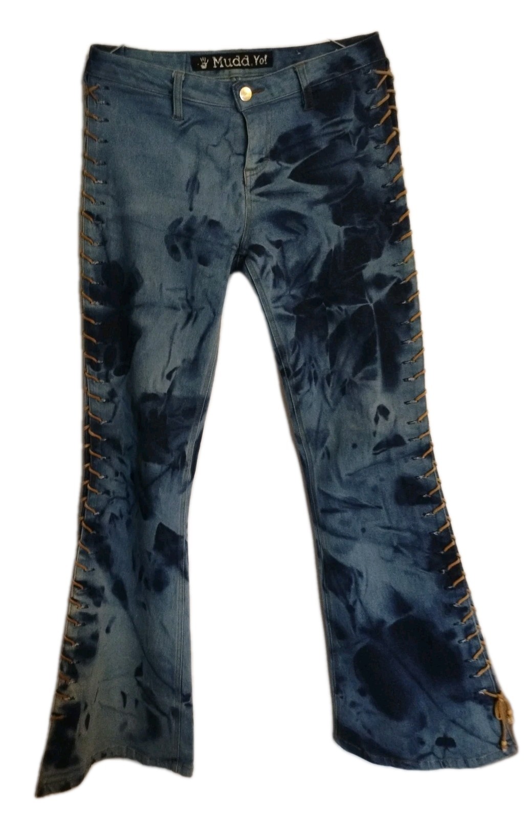 VTG Y2K Mudd Yo Lace Up Leg Jeans Low Rise Flare Bell Bottoms Tie dyed Junior 7