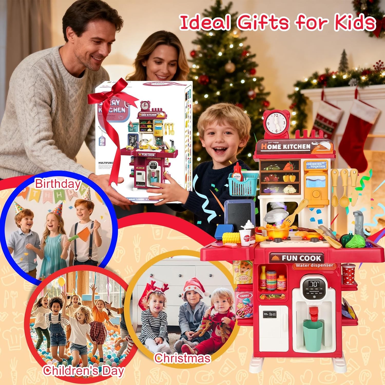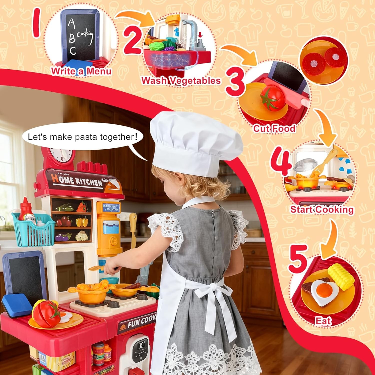 как выглядит Upgrade Toy Kitchen Set for Kids Toddlers Mini Kitchen Playset with Spray Sink фото